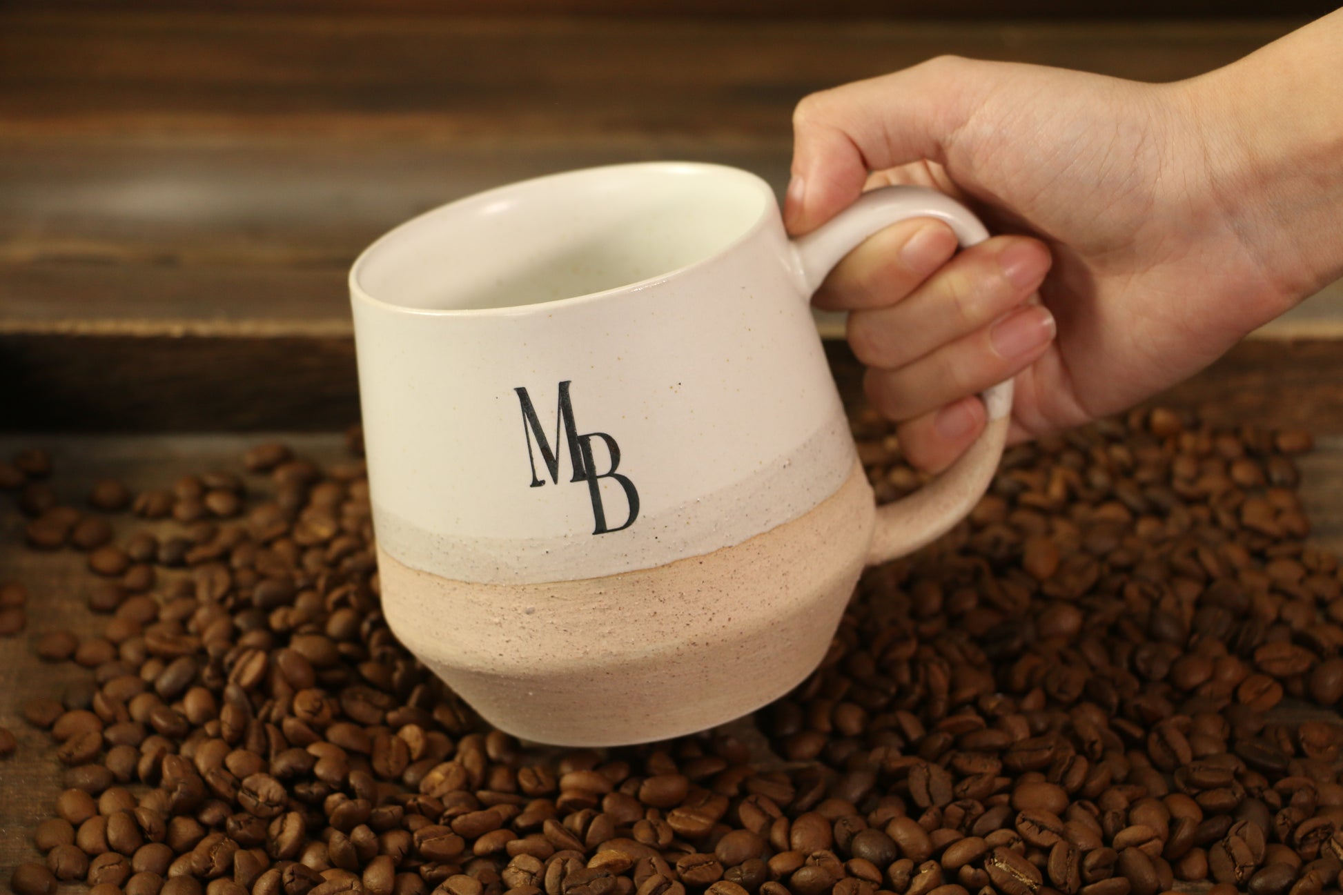 كوب قهوة بتصميم اسم/شعار مخصص، سعة 16 أونصة سائلة، مصنوع يدويًا من السيراميك بتصميم كلاسيكي