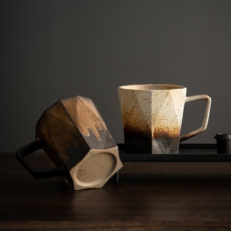 كوب قهوة سيراميك مصنوع يدويًا، باللونين الأسود والرمادي، كوب فخاري مخصص