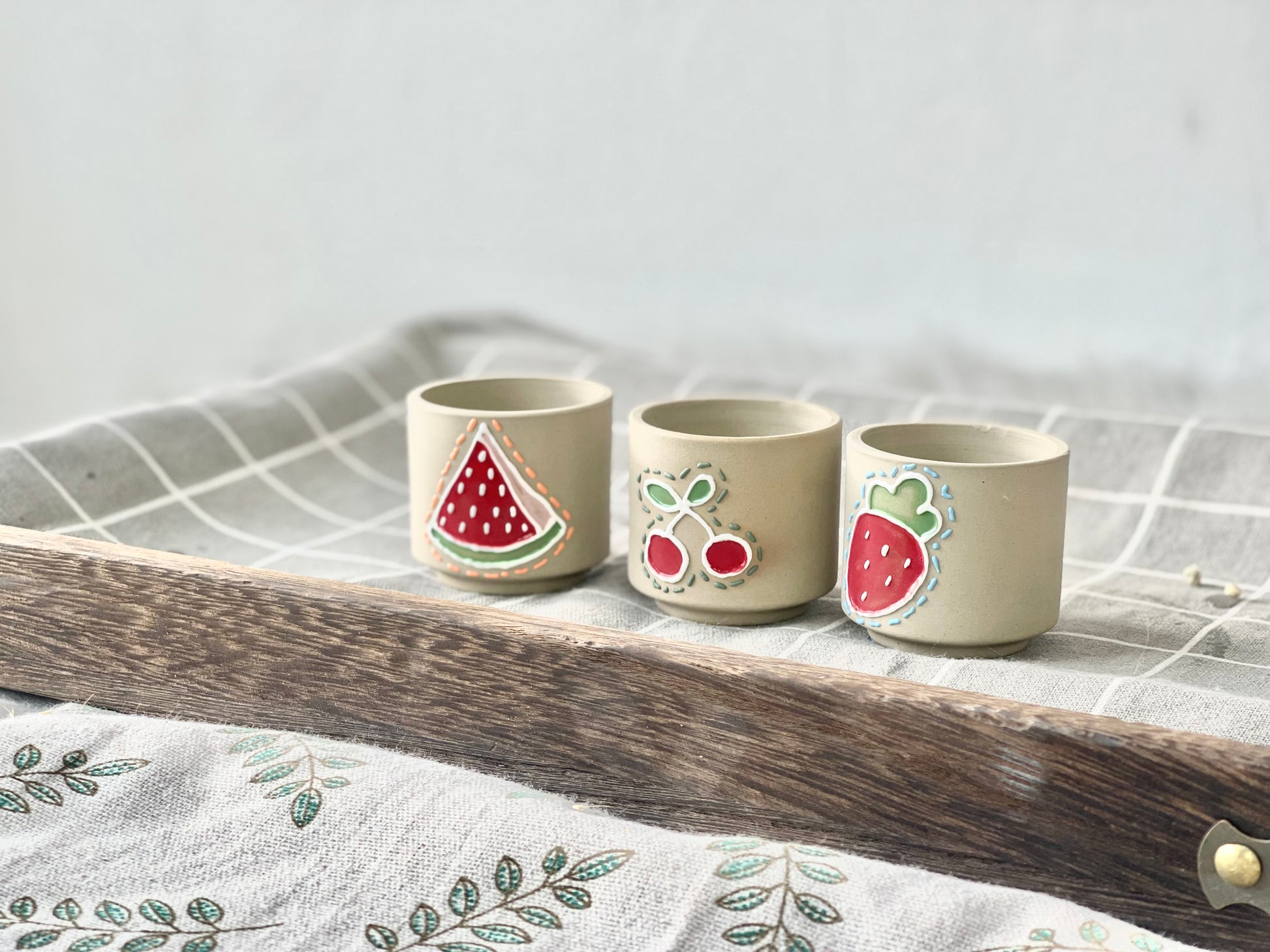 أضف لمسةً من الألوان والسحر إلى مساحتك! تتميز هذه الأصص الخزفية المصنوعة يدويًا للنباتات العصارية بتصاميم فواكه رائعة مرسومة يدويًا، بما في ذلك الفراولة والكرز والبطيخ. كل أصيص مصنوع بعناية فائقة بتفاصيل مزخرفة تضيف لمسةً فنيةً وجذابةً إلى ديكور منزلك.