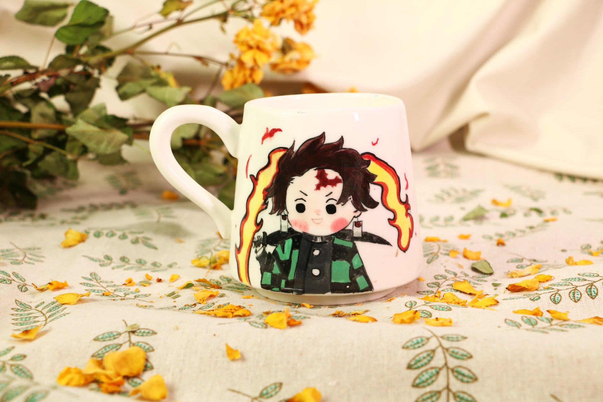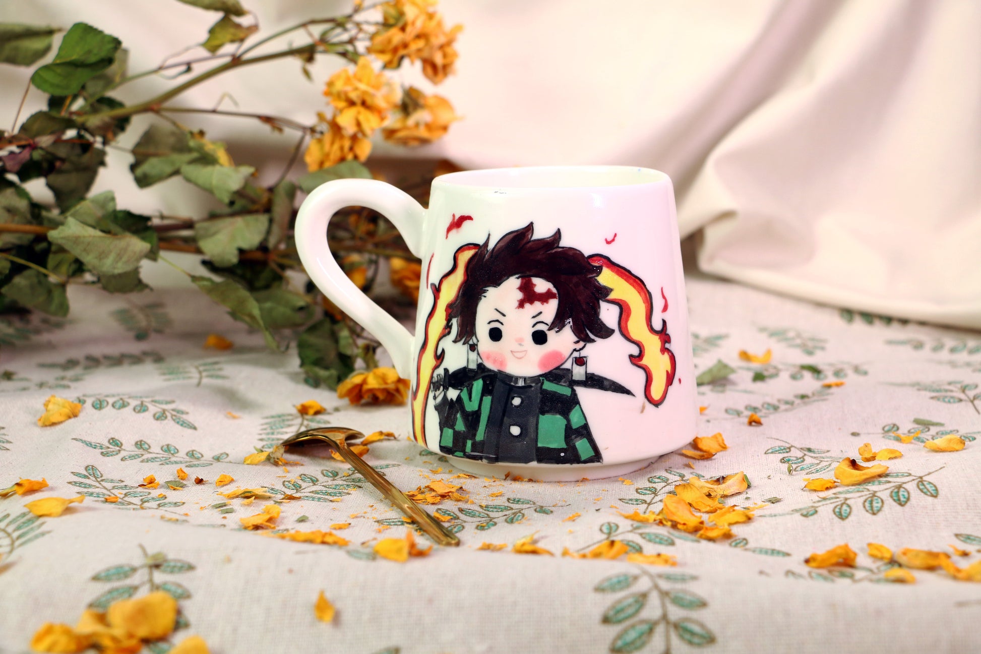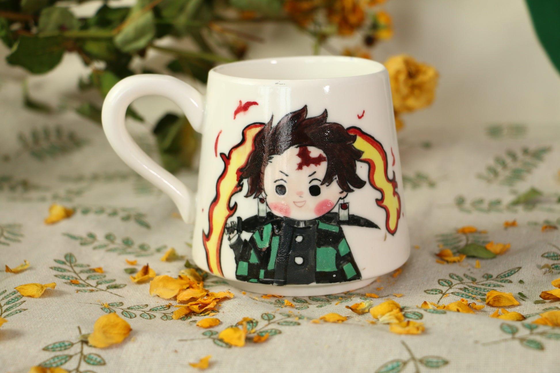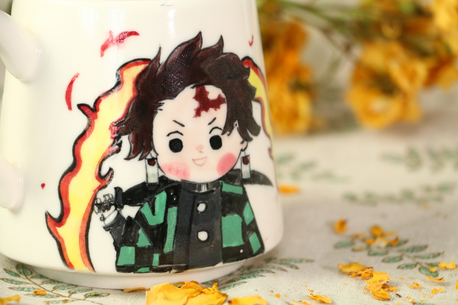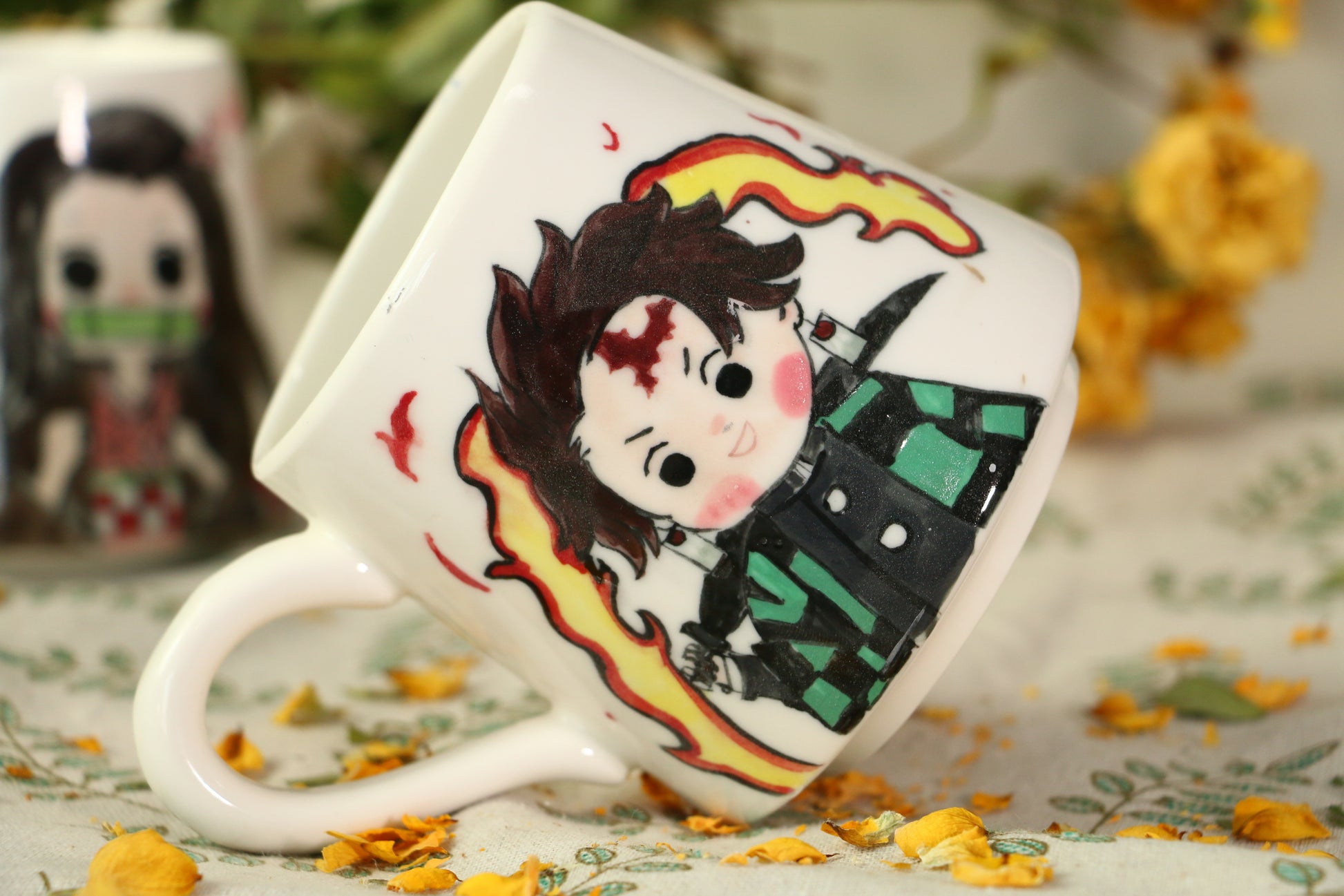أكواب خزفية من تصميم قاتل الشياطين كامادو تانجيرو، كوب فخاري مُخصص لعشاق الأنمي