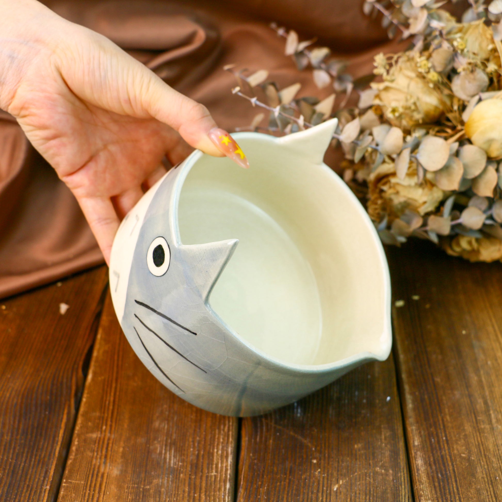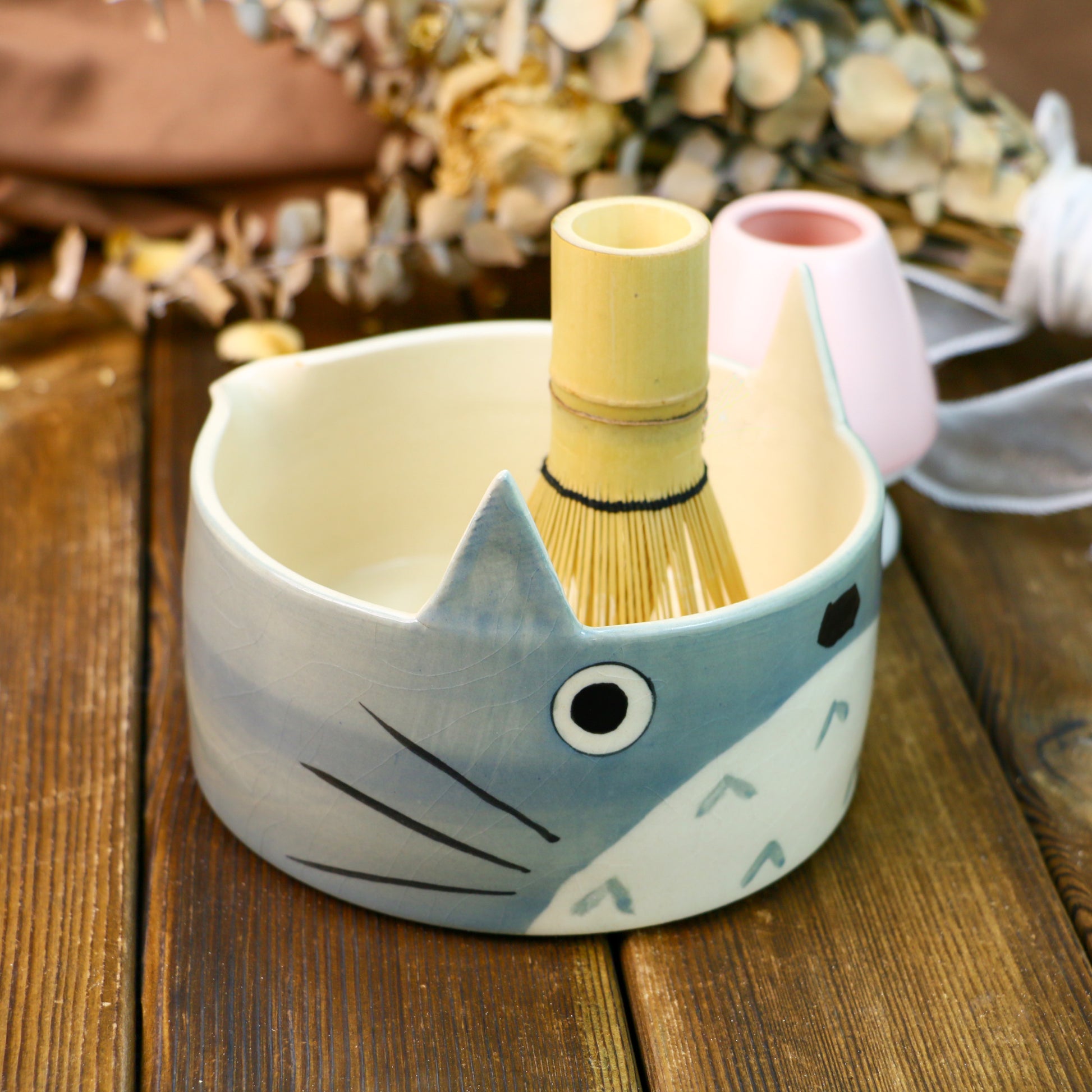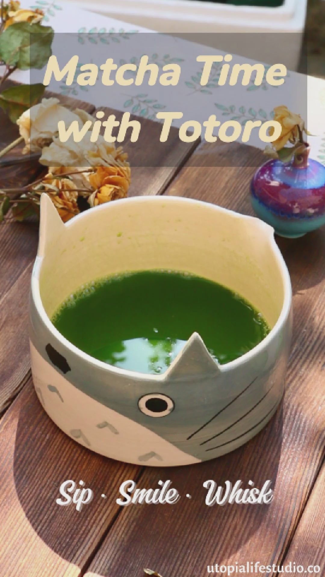 تعرّف على رفيقك الجديد لوقت الشاي - وعاء توتورو الساحر من الماتشا، المرسوم يدويًا بشغف بروح الغابة المفضلة للجميع. مستوحى من عالم استوديو جيبلي الأخّاذ، يُضفي هذا الوعاء الخزفي الفريد لمسةً من الحنين والبهجة على كل رشفة. سواء كنت تُحضّر شاي الماتشا الصباحي أو تُسترخي مع شاي ما بعد الظهيرة، سيكون توتورو معك دائمًا. 💕