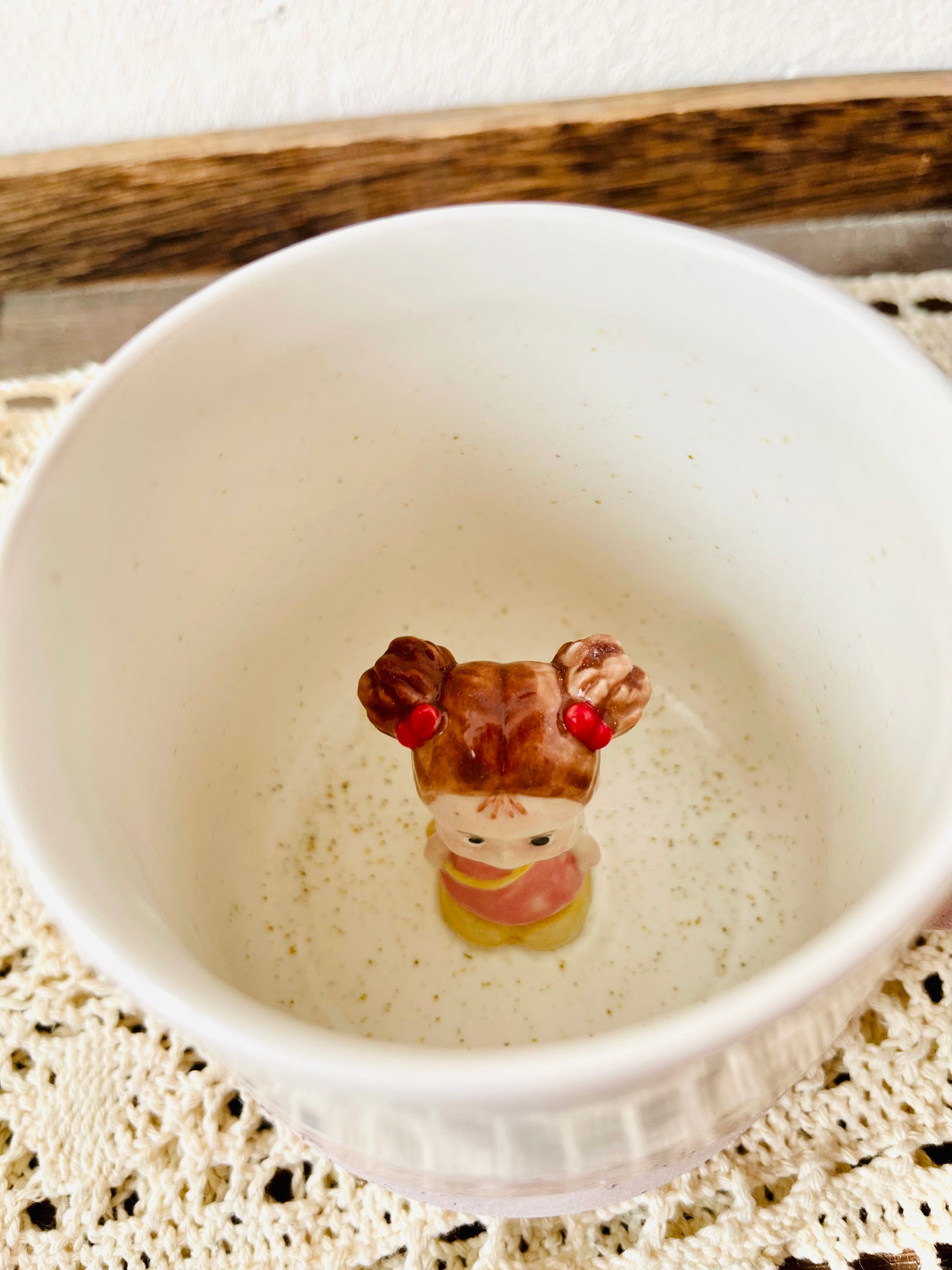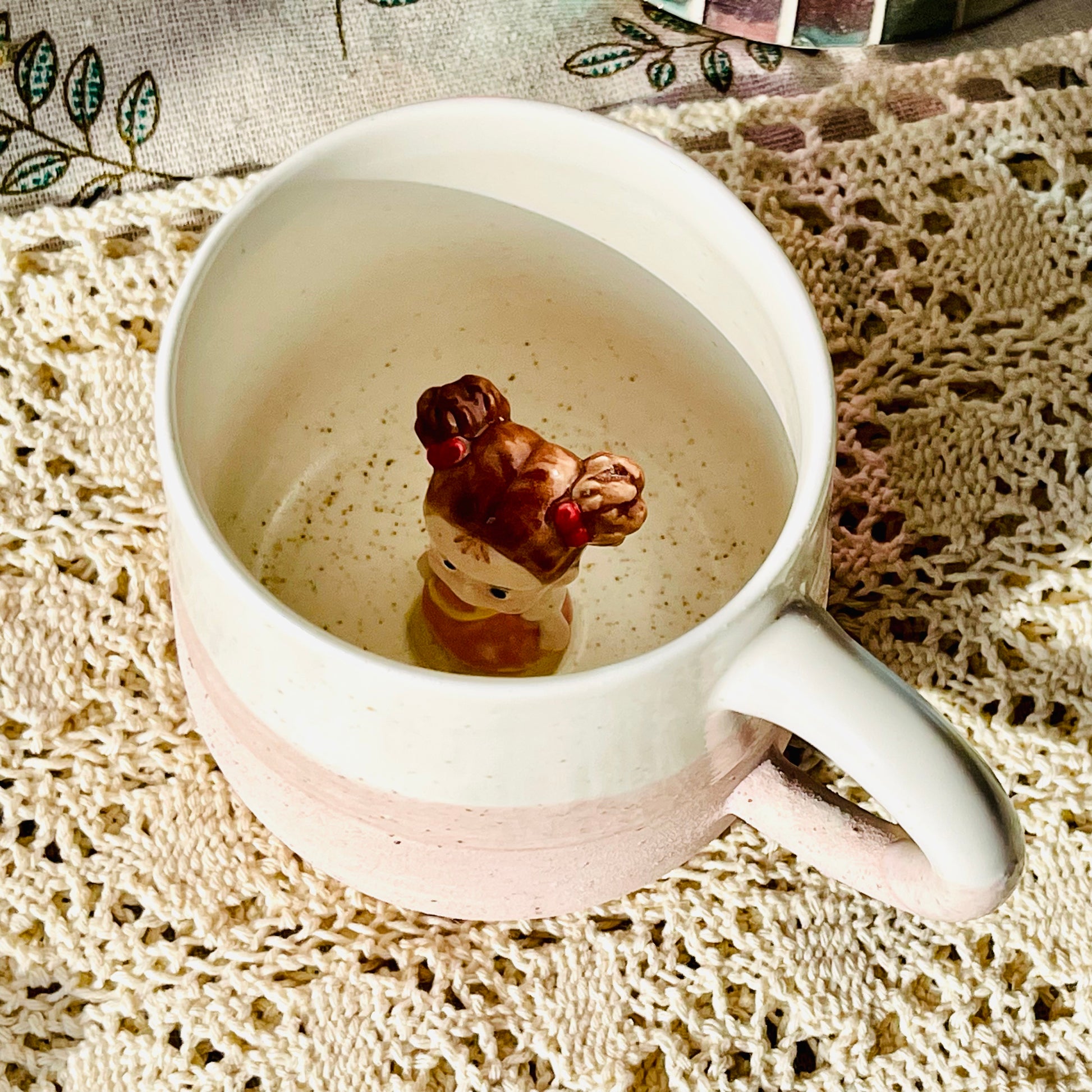 ألقِ نظرة - مفاجأة بانتظارك! تتميز هذه الأكواب المصنوعة يدويًا بتماثيل جيجي أو مي الصغيرة المخفية في الأسفل، لتضفي البهجة مع كل رشفة. متوفرة بثلاثة أحجام ، وهي مثالية للشاي أو القهوة أو لإهداء شخص عزيز. ☕💫