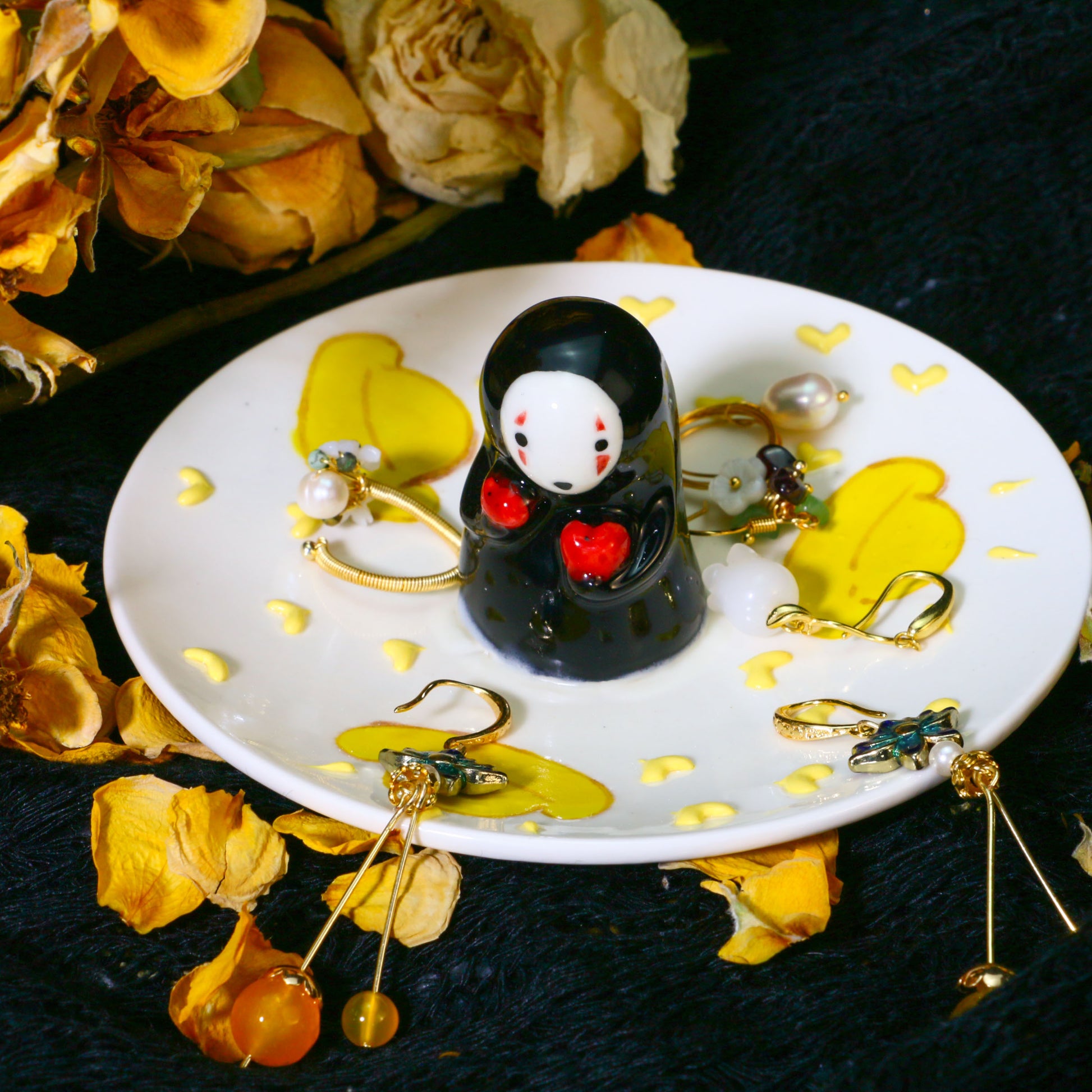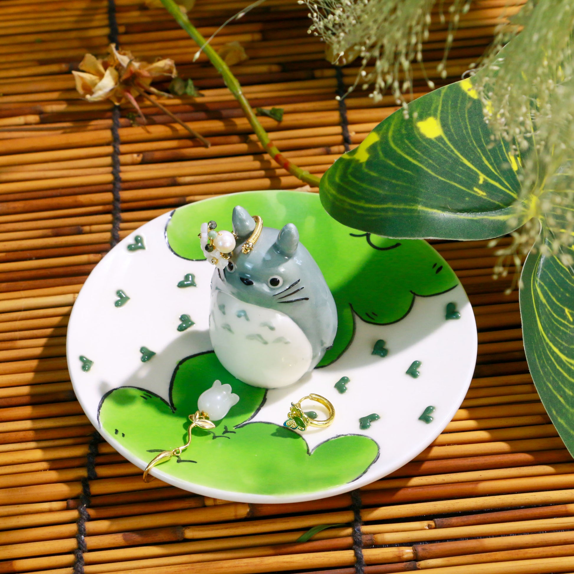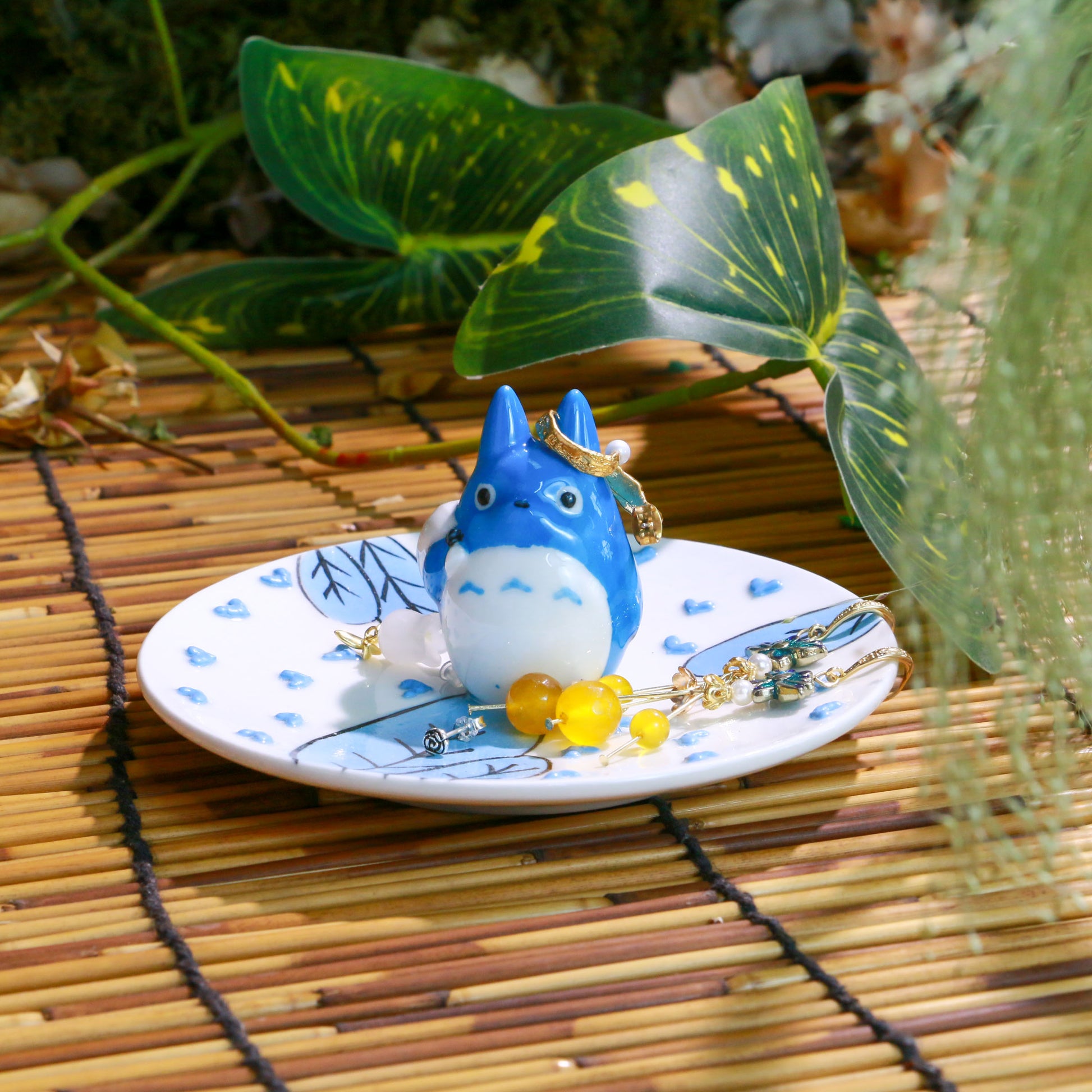 طبق خواتم من الفخار بتصميم توتورو كاواي، صينية حامل سيراميك مصنوعة يدويًا كهدية زفاف، صينية مجوهرات أنمي مخصصة