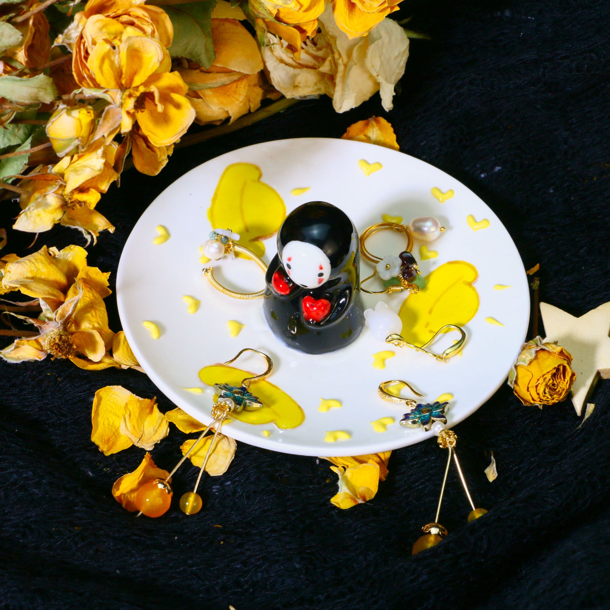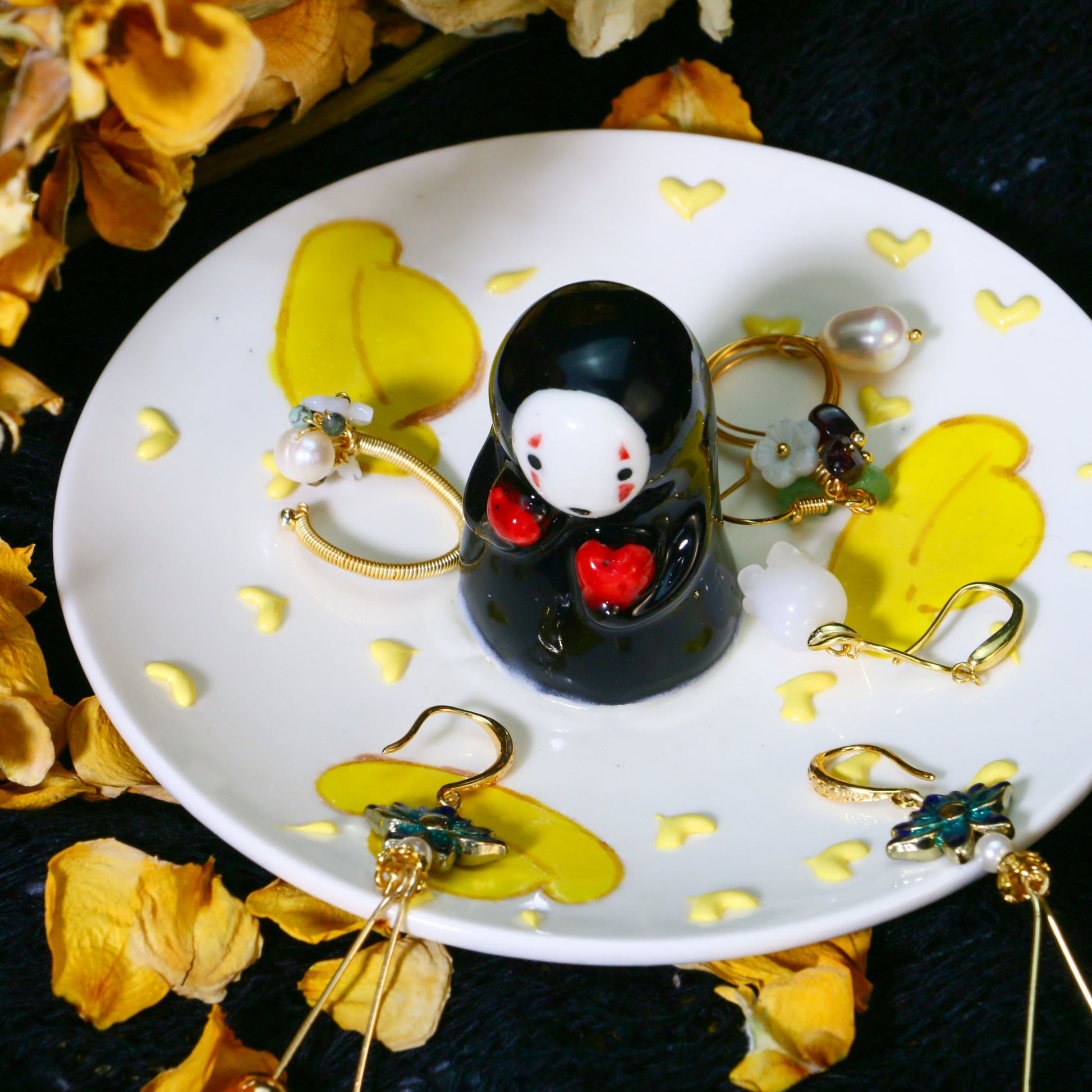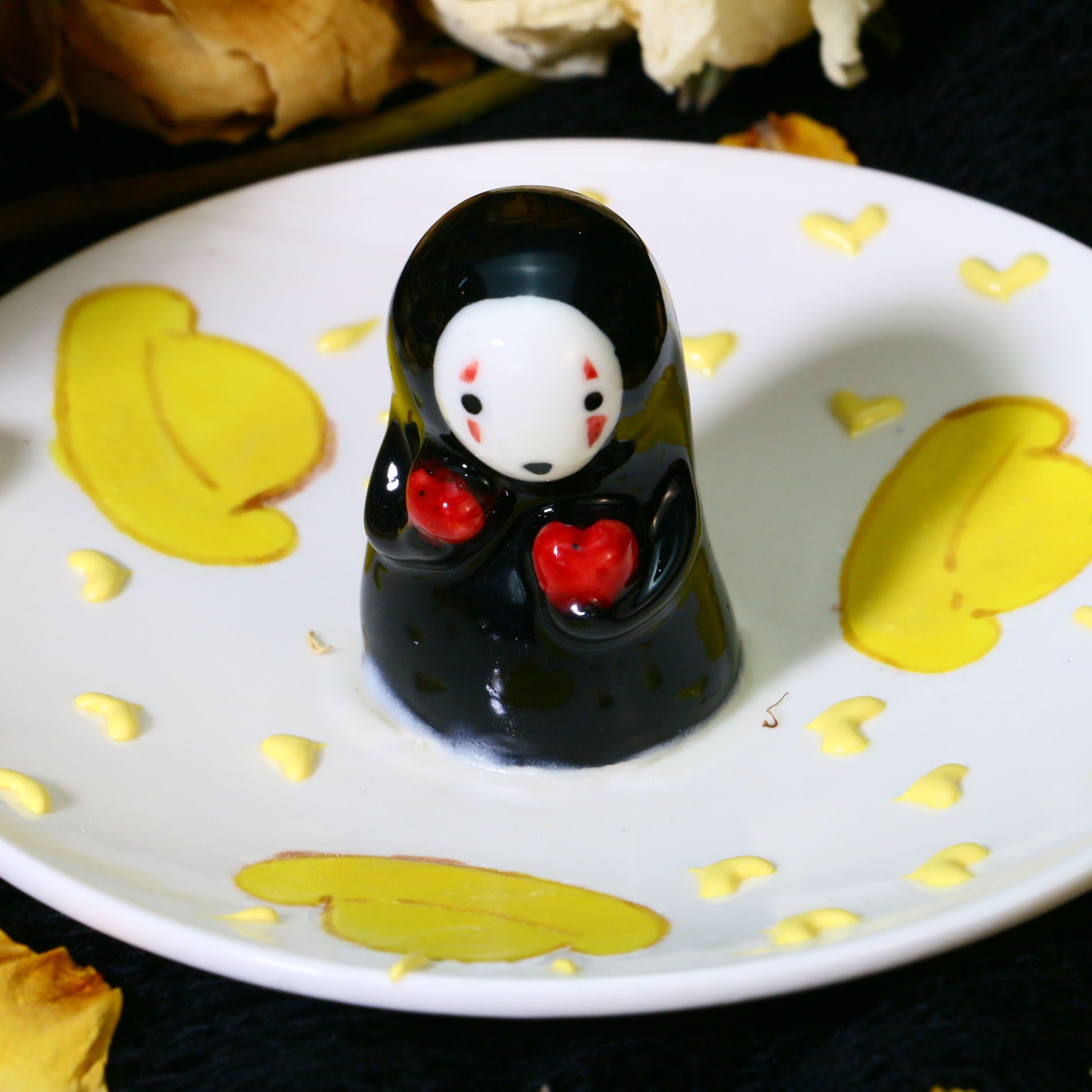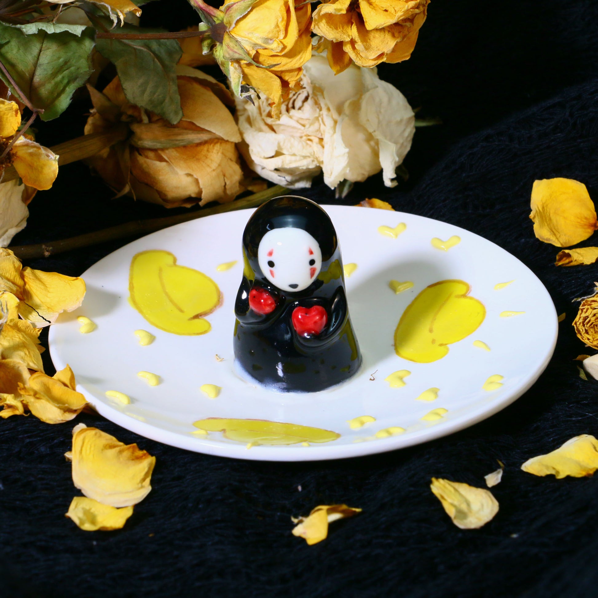 طبق خاتم على شكل رجل بلا وجه، طبق حلي مصنوع يدويًا على شكل تمثال صغير، صينية مجوهرات أنمي بتصميم قلب ثلاثي الأبعاد