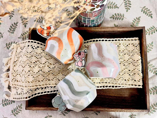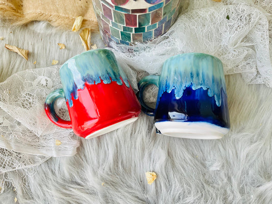 Ceramic Coffee Cup and Saucer, Pottery Handmade Artistic Coffee Cup