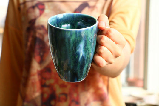 Ceramic Coffee Mug Handmade, 12 Oz Deep-sea Series Blue Personalized Pottery Mug