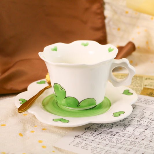 Cute Floral Design Ceramic Mug with Scalloped Saucer