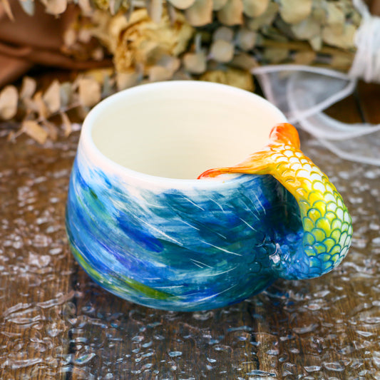 Mystic Mermaid Ceramic Mug with Handmade 3D Mermaid Tail Handle