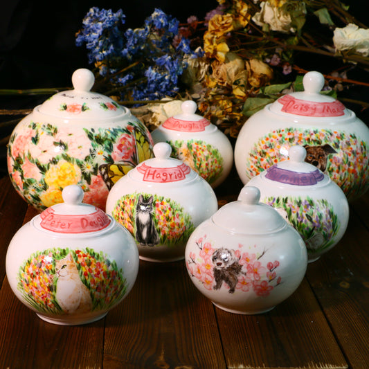 Custom Pet Ceramic Urn, Personalized Hand-Painted Pet Portrait Urn for Memorial & Keepsake