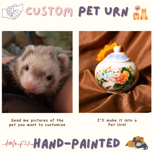 Custom Angora Ferret Urn, Personalized Hand-painted Pet Portrait Ceramic Urn for Memorial & Keepsake