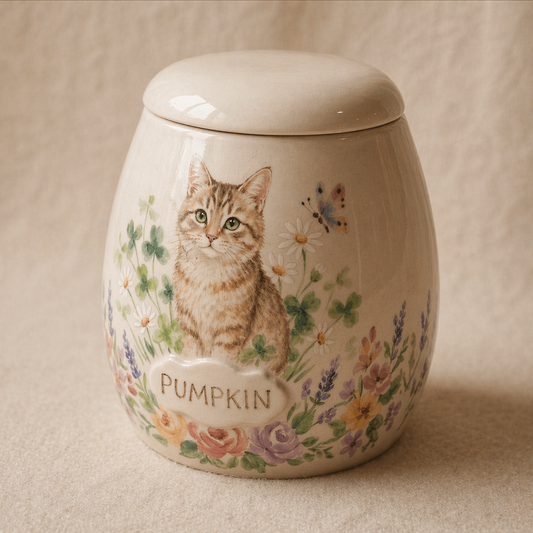 Hand-Painted Pet Portrait Urn – Handmade Ceramic Ashes Keepsake