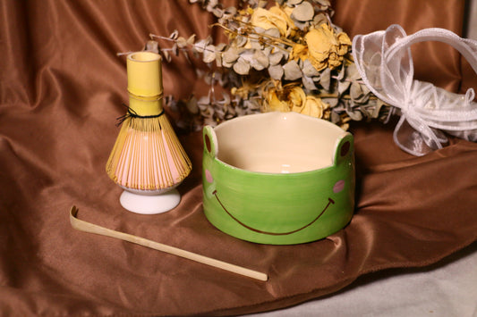 Cute Frog Ceramic Matcha Bowl Set, Custom Hand-painted Matcha Bowl