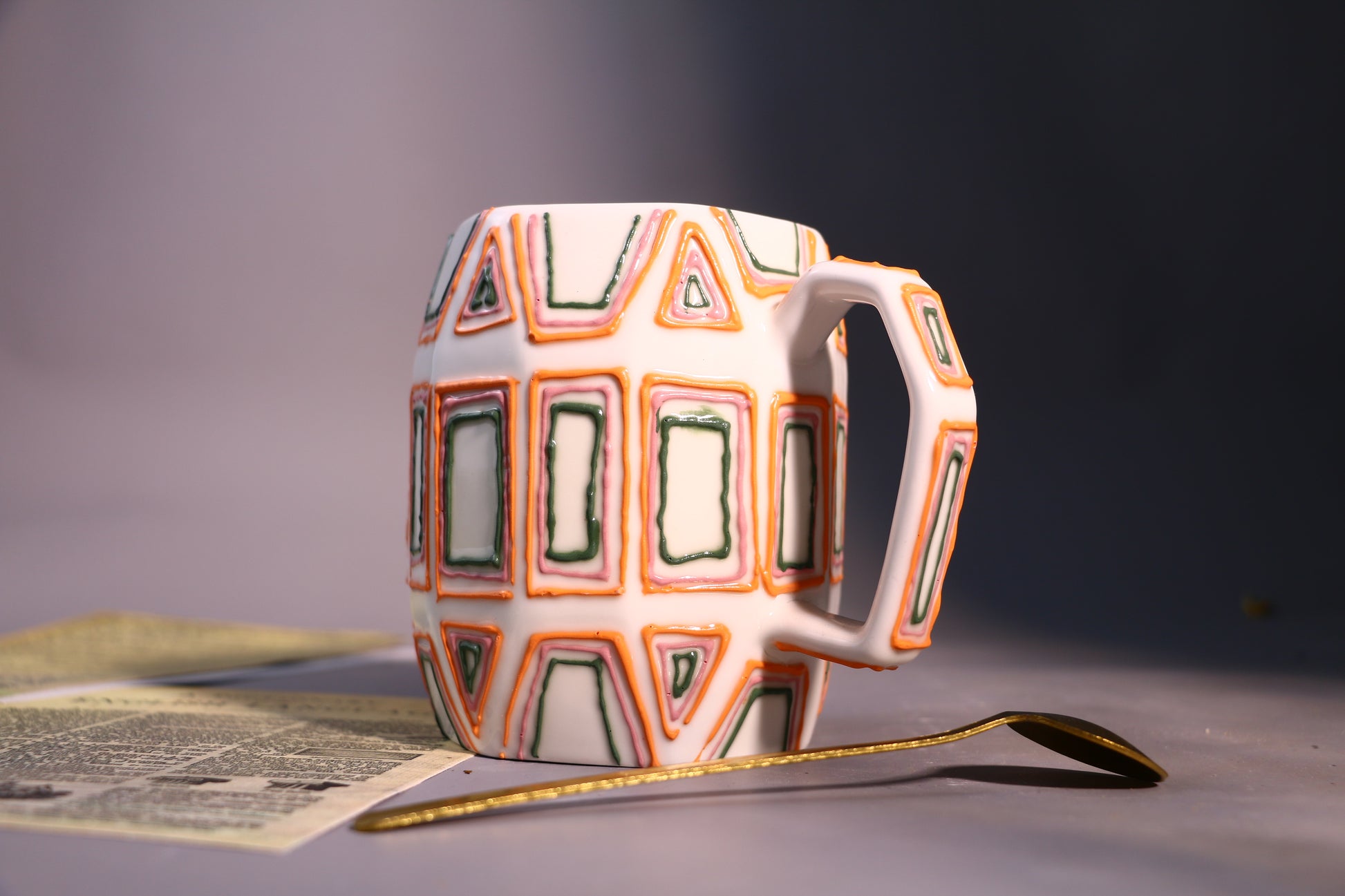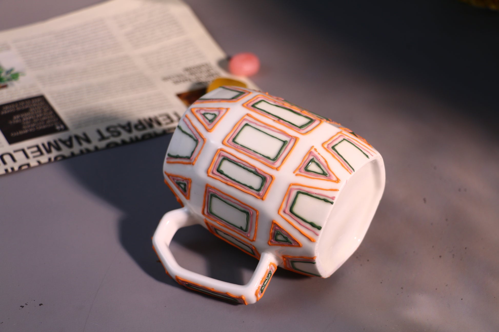🔳 3D-geometrisches Design – Das erhabene Strukturmuster verleiht der Tasse Tiefe und ein taktiles Element.
