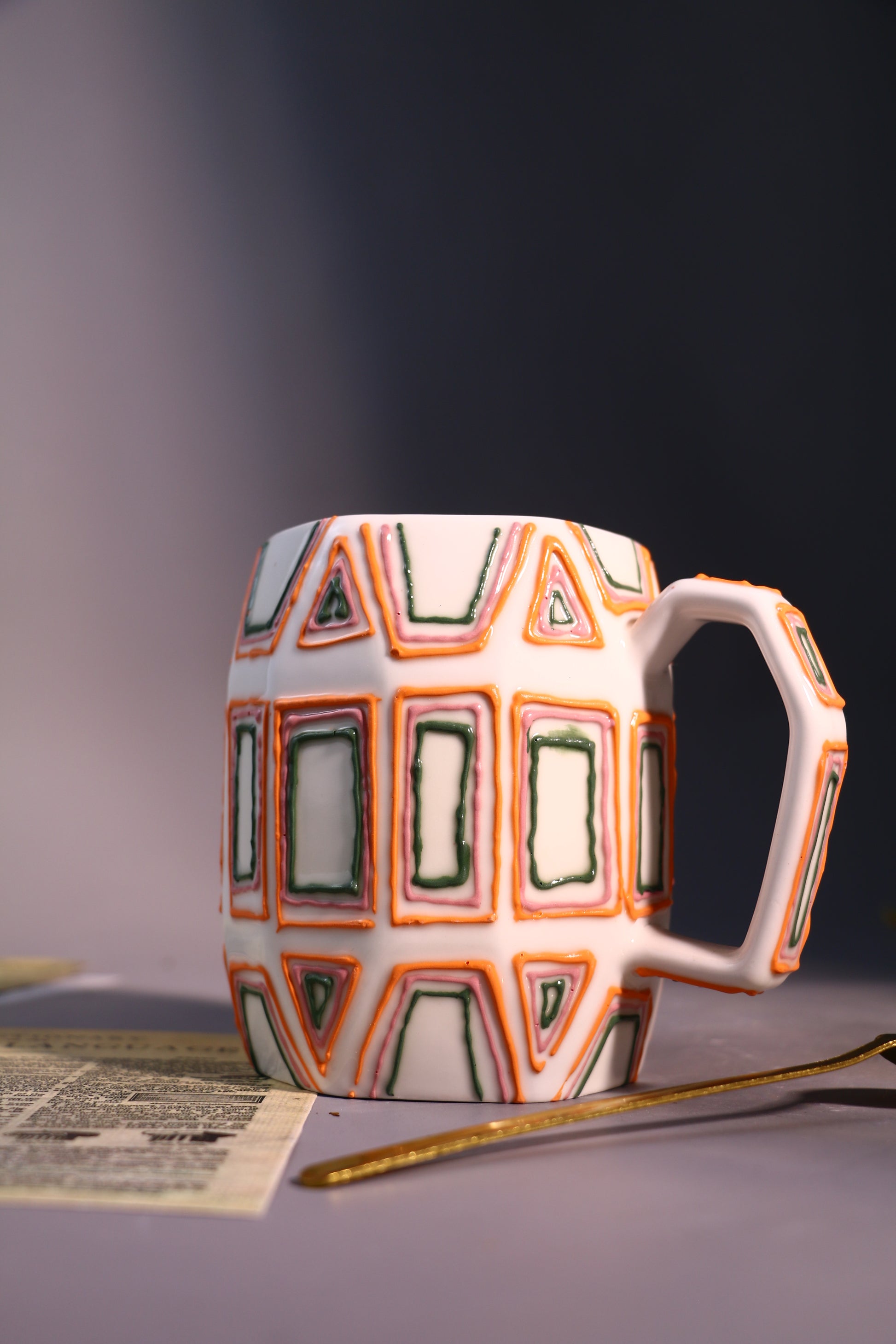🎨 Setzen Sie ein starkes Statement mit dieser handgefertigten Keramiktasse mit einem filigranen geometrischen Muster in erhabener 3D-Textur. Die handgemalten abstrakten Linien und das strukturierte Design schaffen eine markante, moderne Ästhetik – perfekt für alle, die moderne, kunstvoll inspirierte Trinkgefäße lieben. Der ergonomische Griff liegt angenehm in der Hand, während der robuste Keramikkörper die Tasse perfekt für den täglichen Gebrauch macht. Ob Sie Ihren Morgenkaffee genießen oder sie als einzigartiges Keramikstück präsentieren – diese Tasse verbindet Funktionalität mit Kunstfertigkeit.