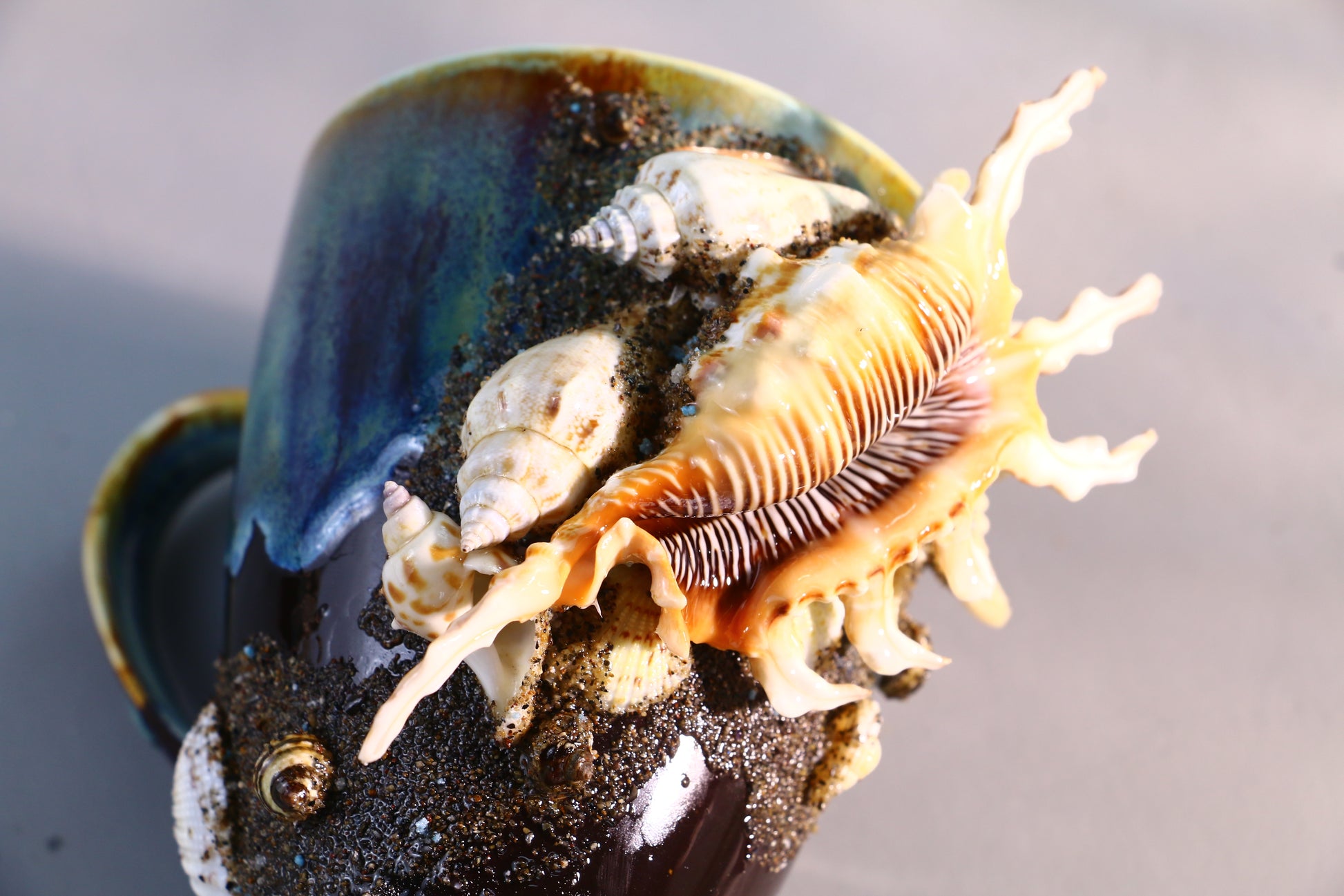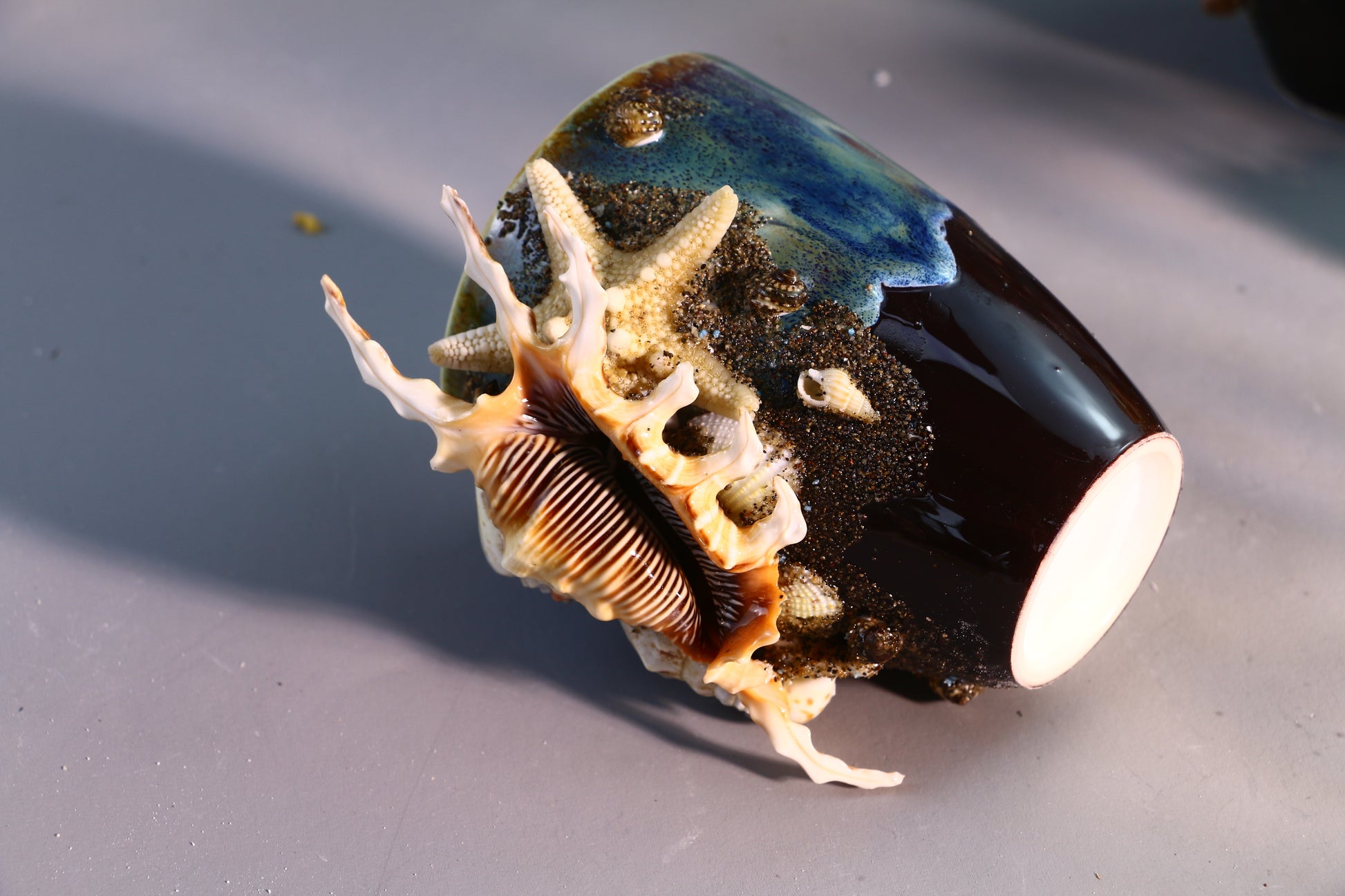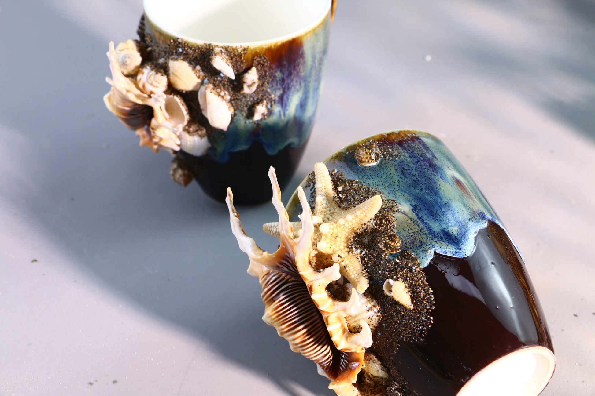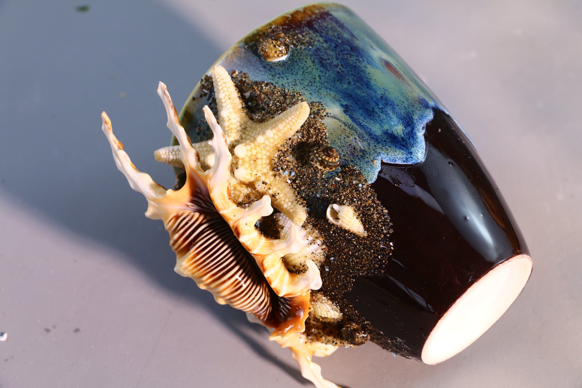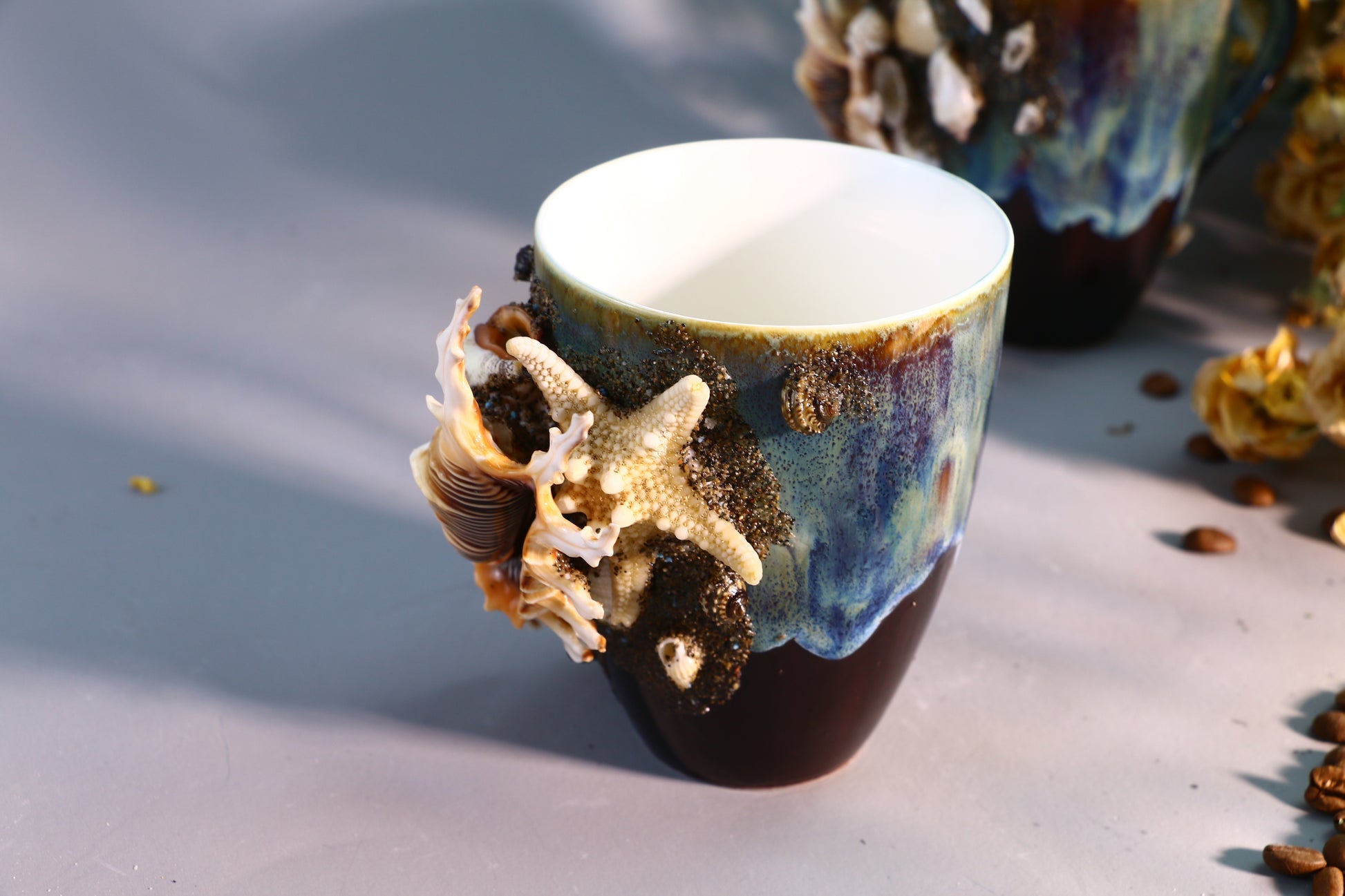 Keramik-Kaffeetasse mit Muscheln, Ozean-Serie, personalisierte handgefertigte Keramiktasse für Geschenke