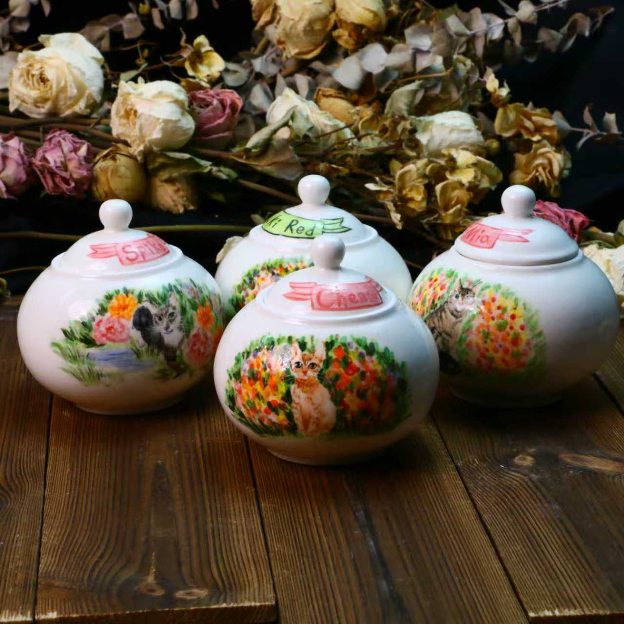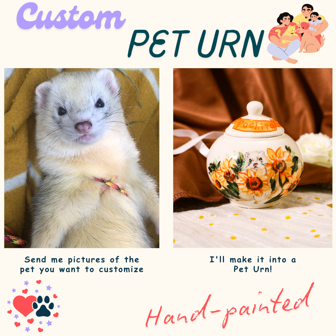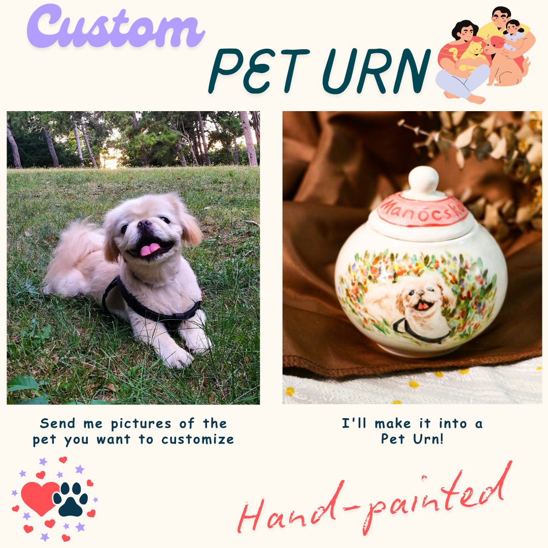 Custom Pet Ceramic Urn, Personalized Hand-Painted Pet Portrait Urn for Memorial & Keepsake