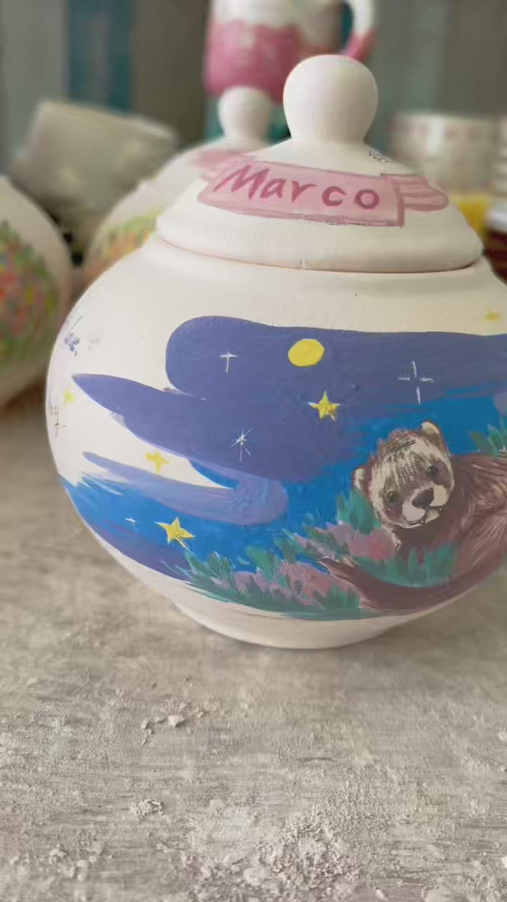 🖼️ Custom Pet Portrait: Send us a photo of your pet, and we will create a detailed hand-painted portrait to reflect their personality and beauty. The portrait will be covered under the transparent glaze.