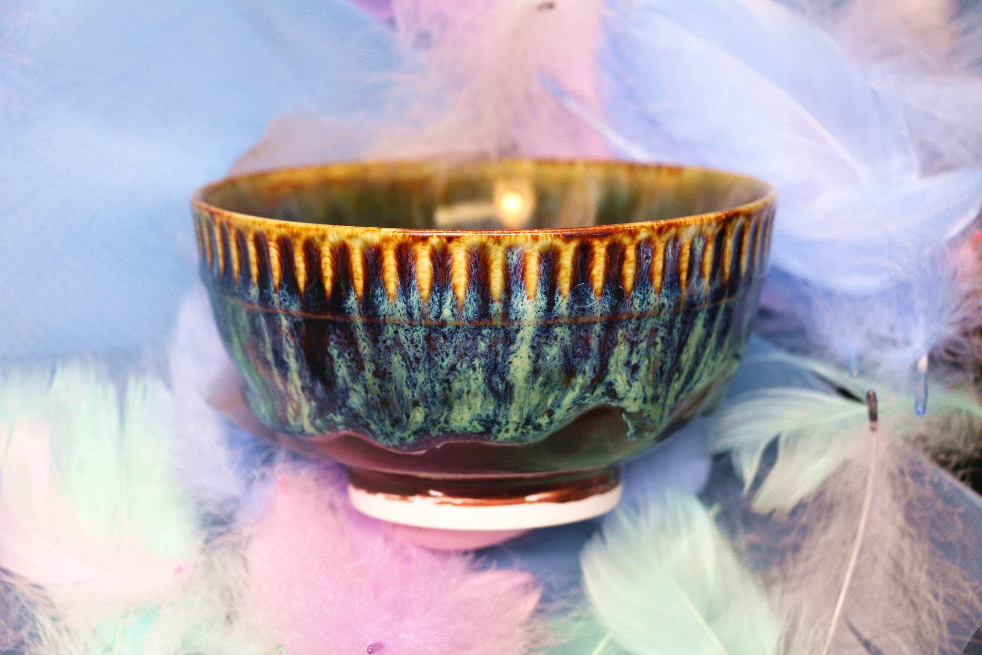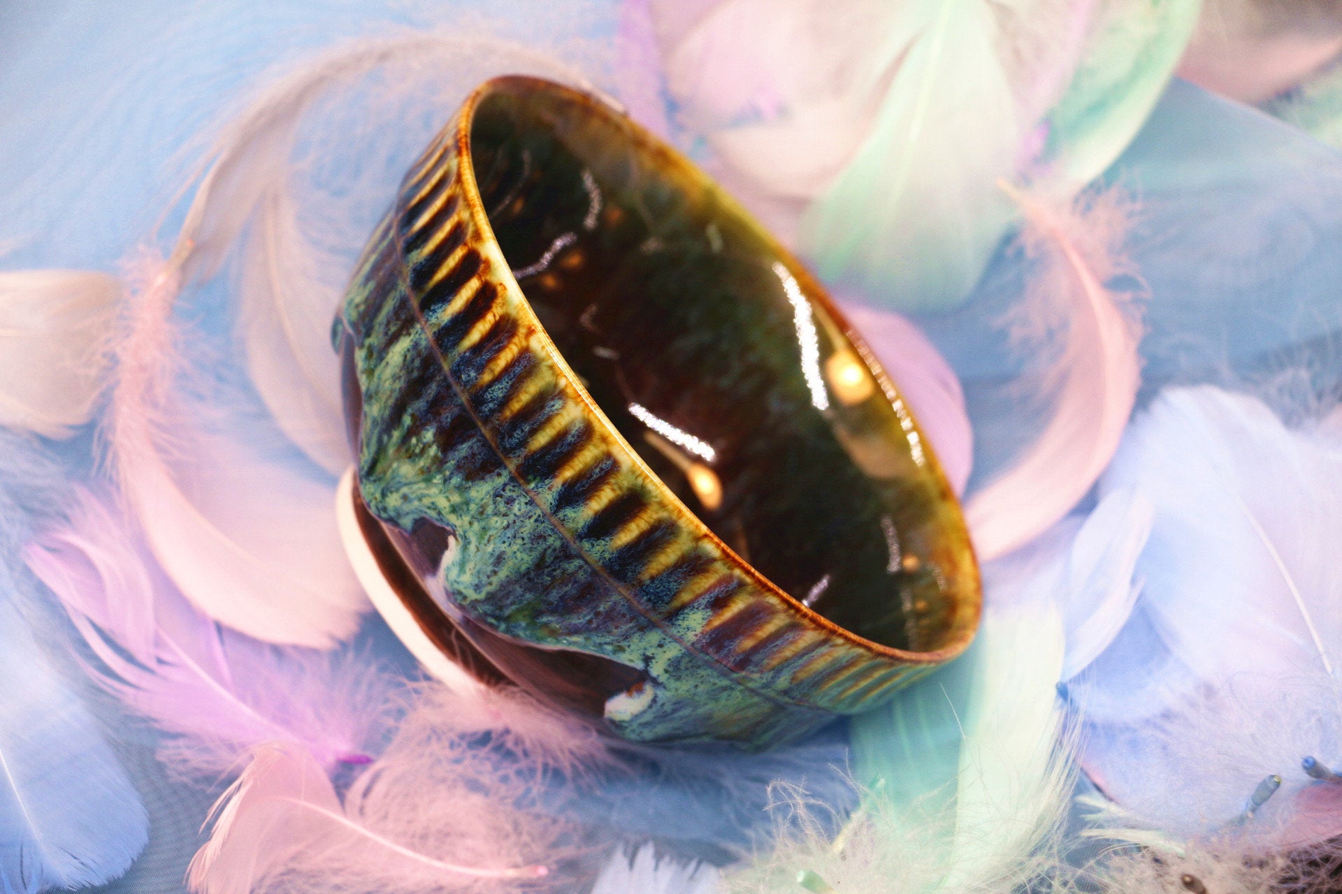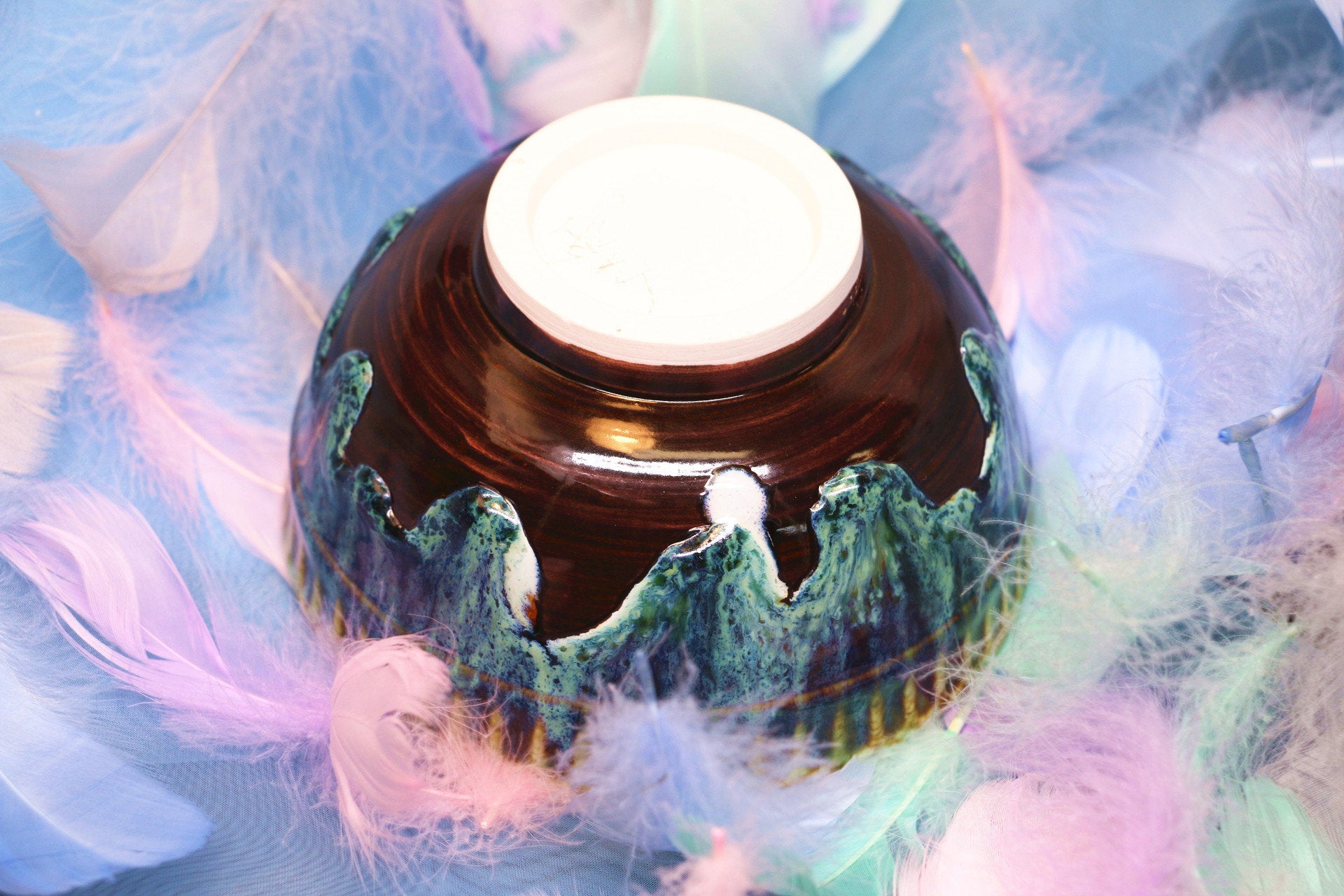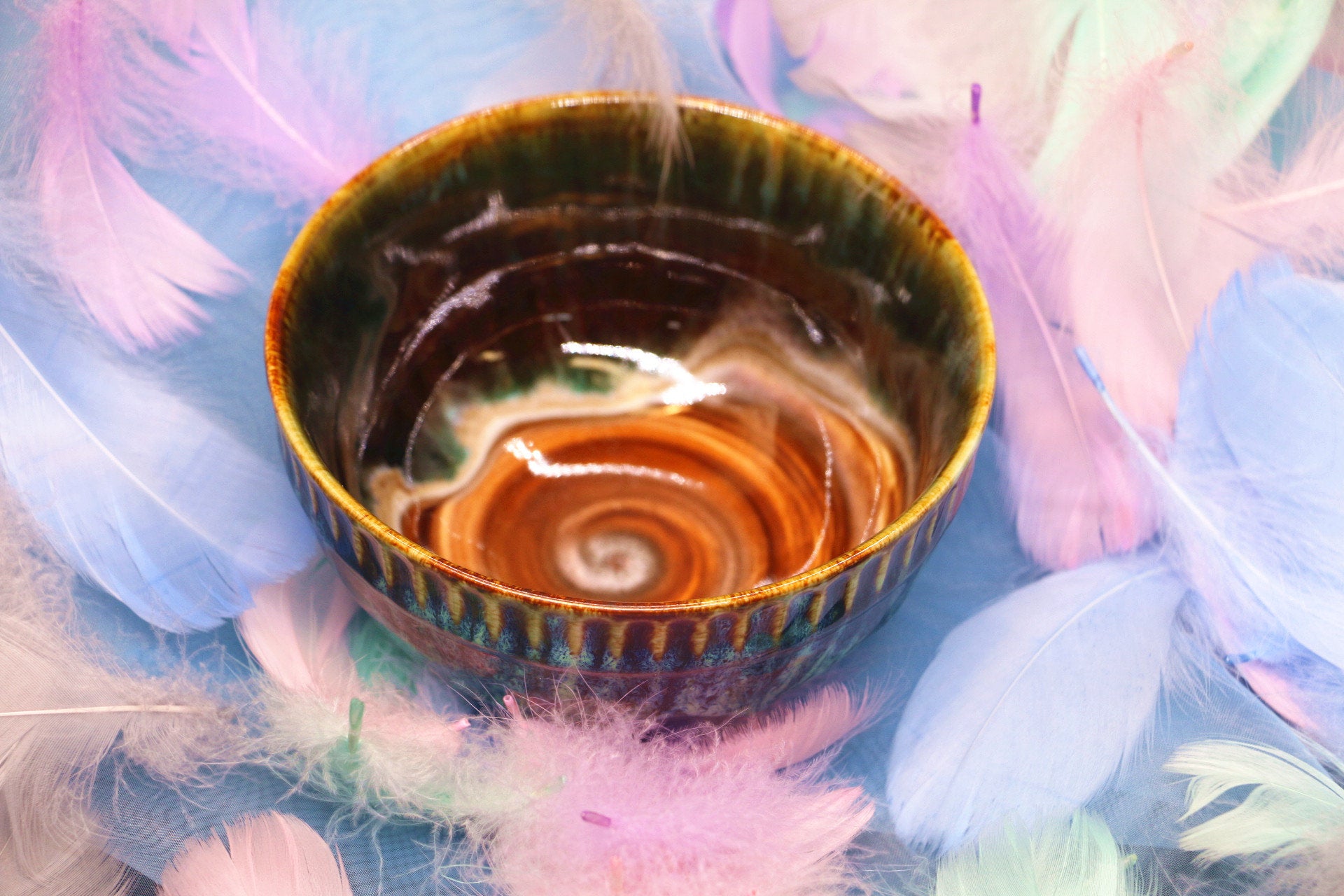 Handmade Psychedelic Green Ceramic Bowl, Personalized Pottery Bowl