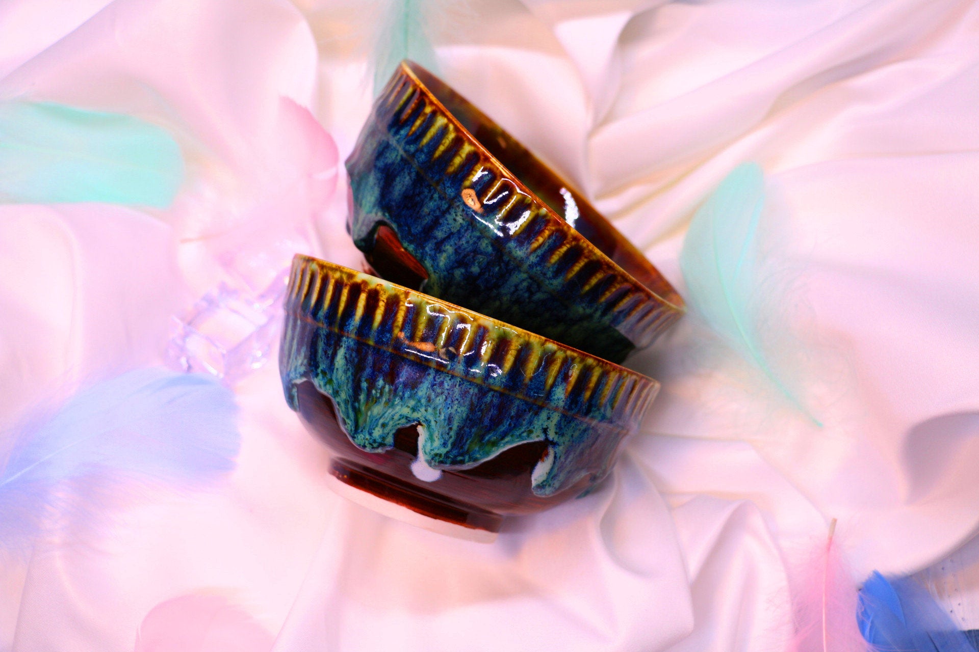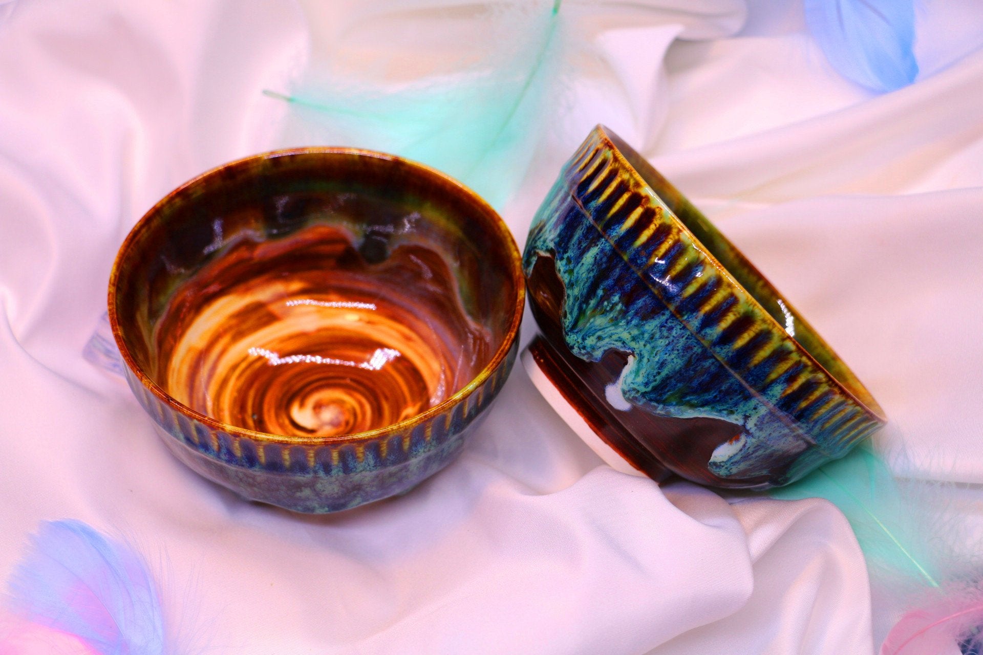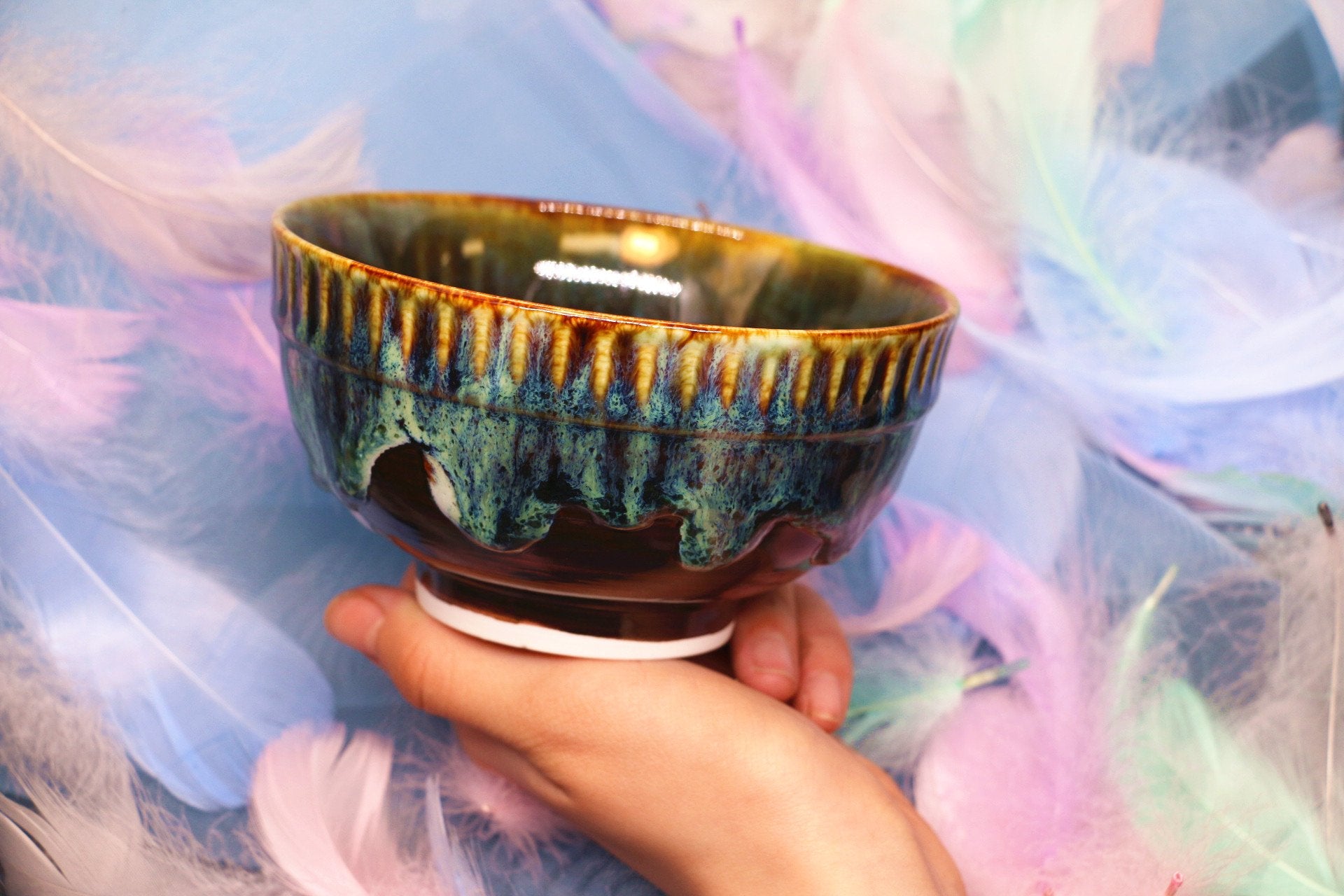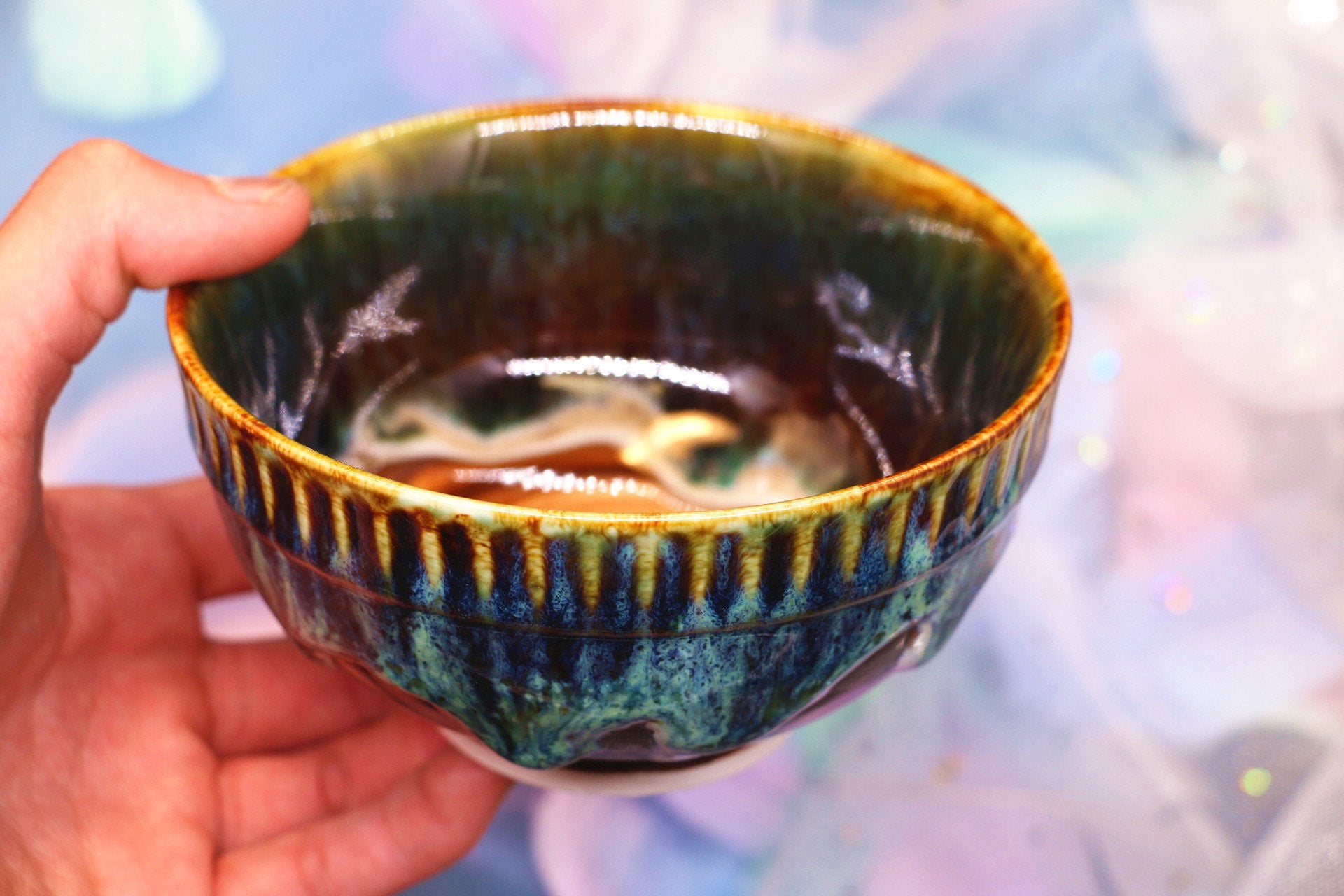 Handmade Psychedelic Green Ceramic Bowl, Personalized Pottery Bowl