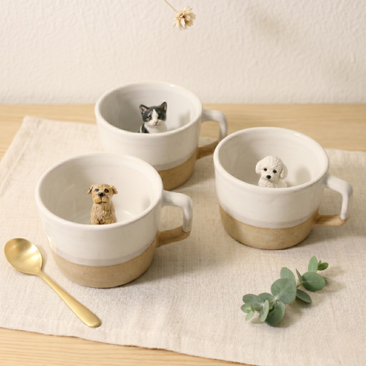 Custom Ceramic Pet Mug, 6Oz Personalized Coffee Mug with Dog or Cat Figurine
