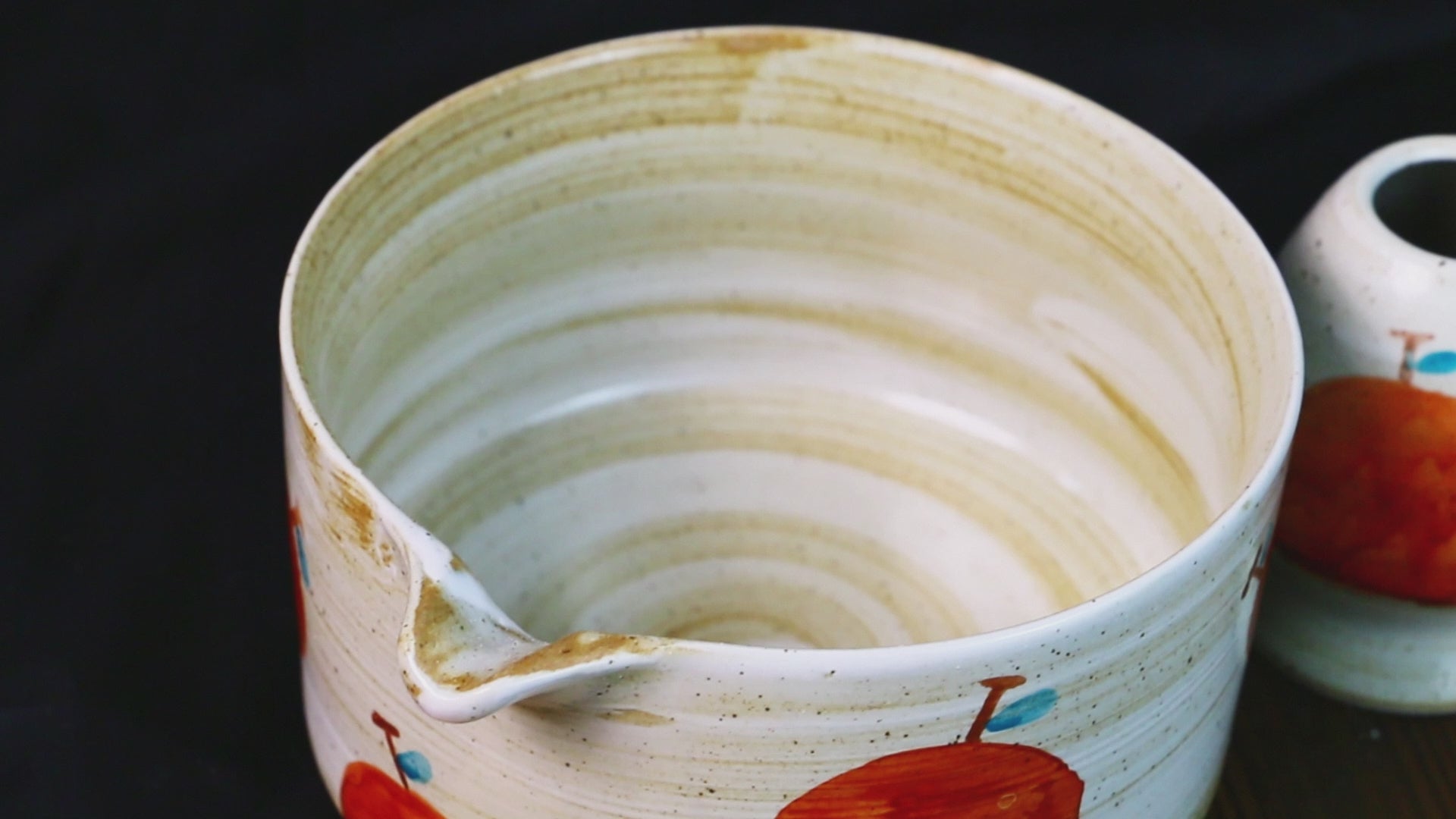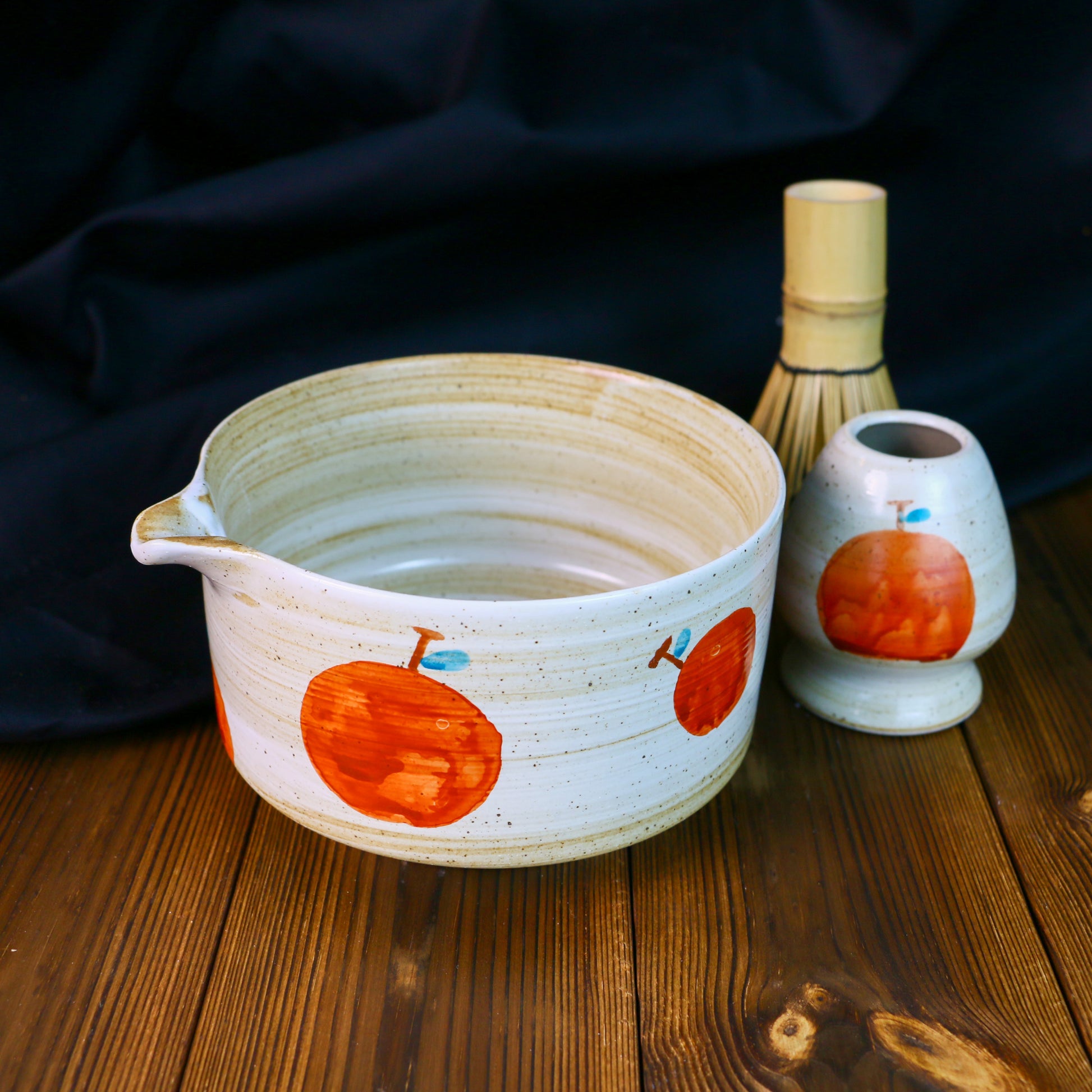 Hand-Painted Ceramic Matcha Tea Bowl Set with Fruit-Inspired Design