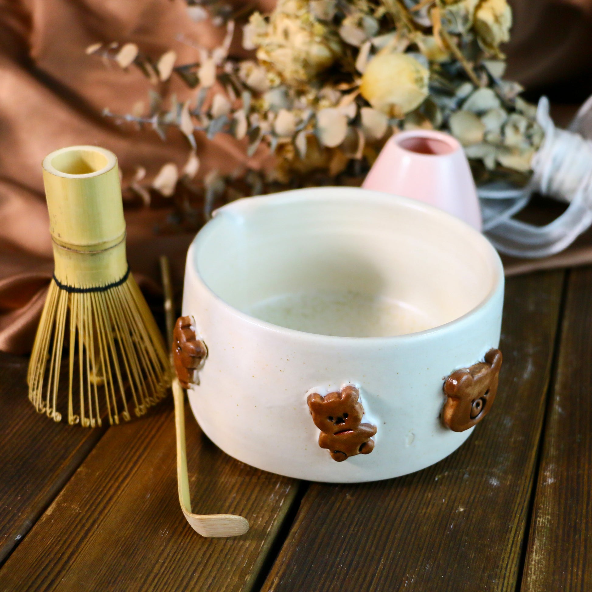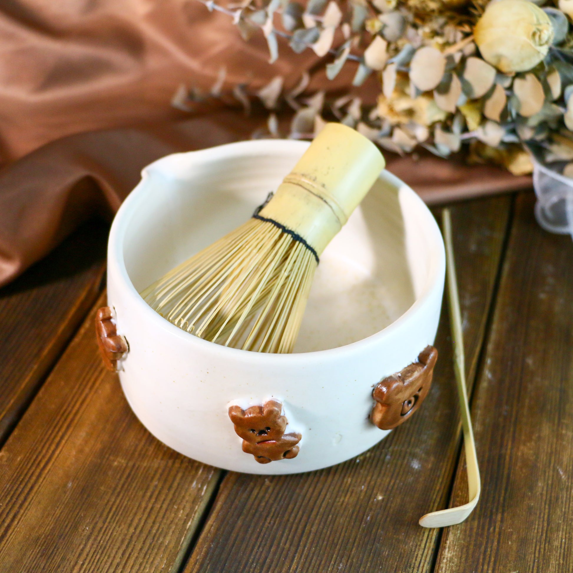 Handcrafted 3D Bear Ceramic Matcha Bowl Set, Custom Cute Pottery Tea Set