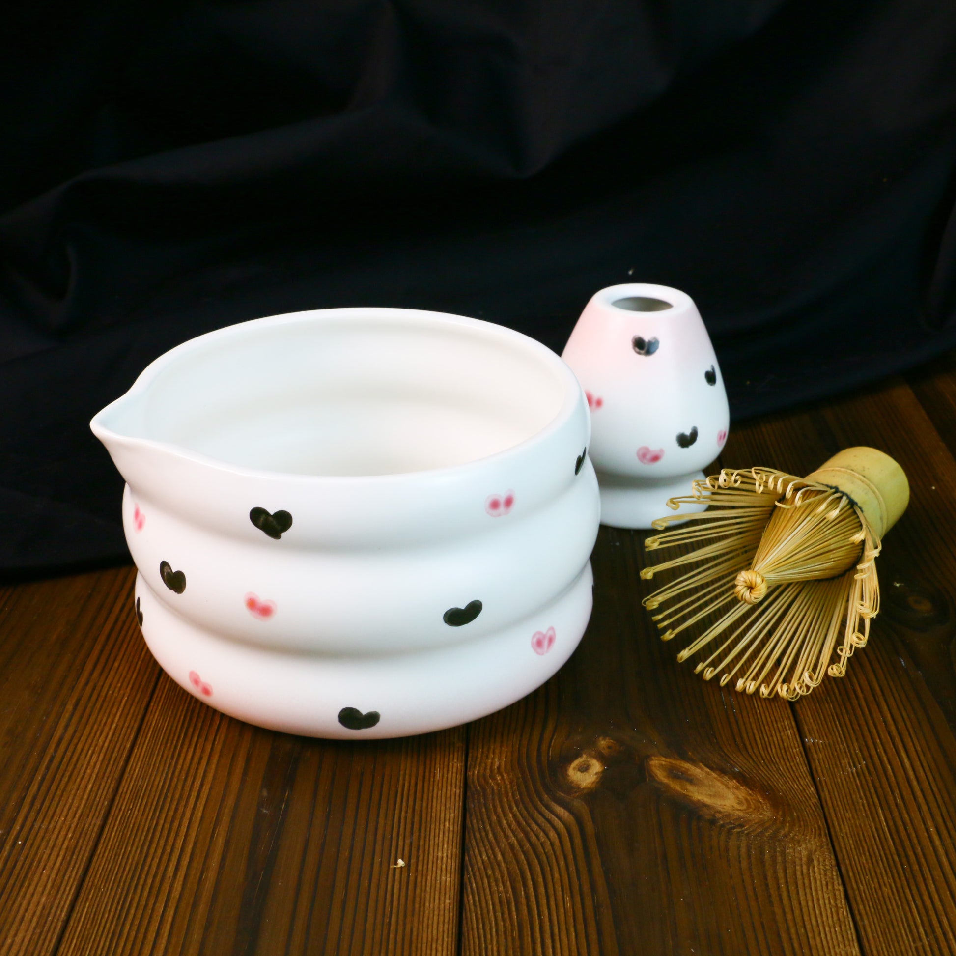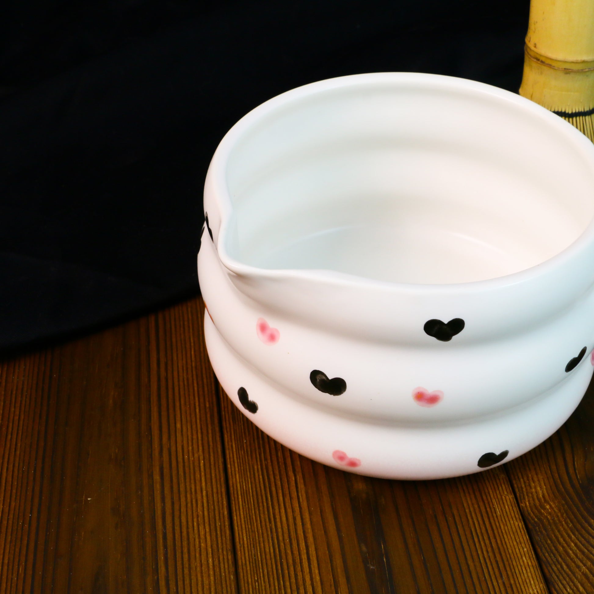 Handmade Ceramic Matcha Bowl – Wavy Ceramic Tea Bowl with Elegant Heart Details