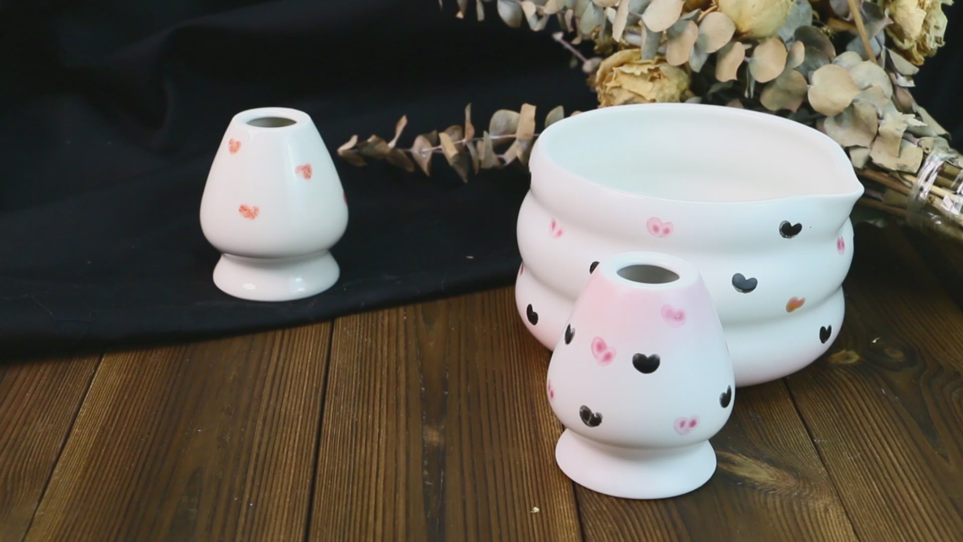 🍵 Elevate your tea experience with this handmade ceramic matcha bowl, featuring a beautifully textured wavy design that enhances its artistic charm. The carefully hand-painted heart motifs add a delicate and whimsical touch, making it perfect for both daily tea rituals and decorative display. The charming heart patterns bring warmth and uniqueness to every sip, making it an essential piece for matcha lovers, tea enthusiasts, and pottery collectors alike.