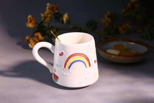 Happy Rainbow mug, Pottery mug, Handmade ceramic mug, Unique gift for her