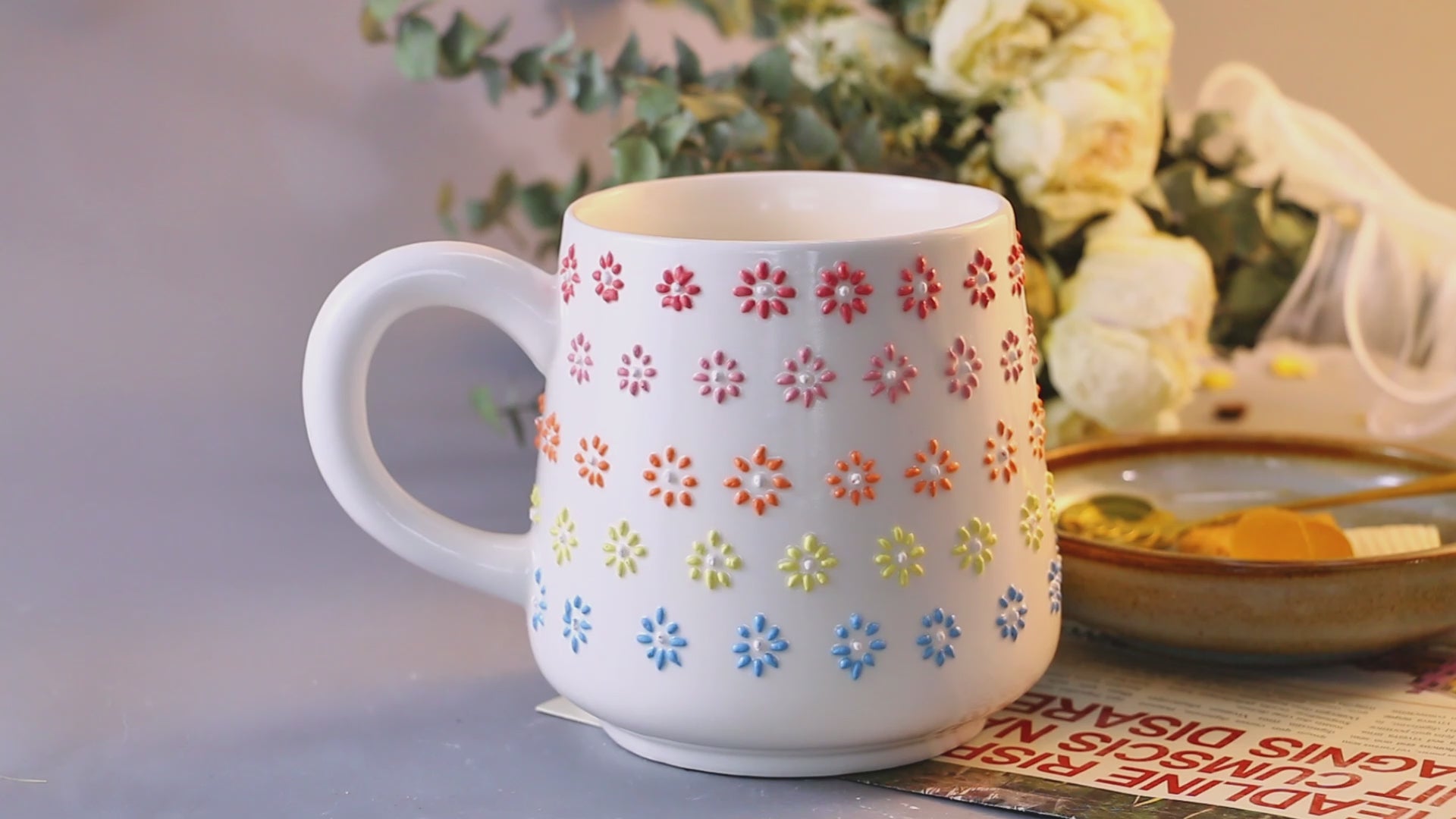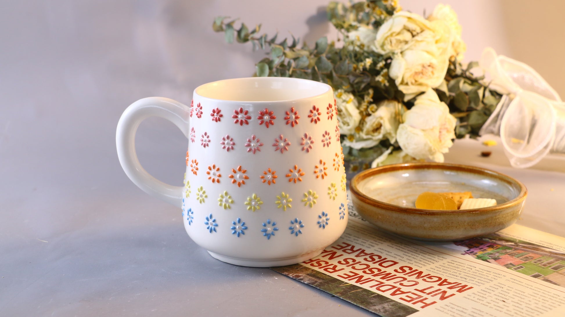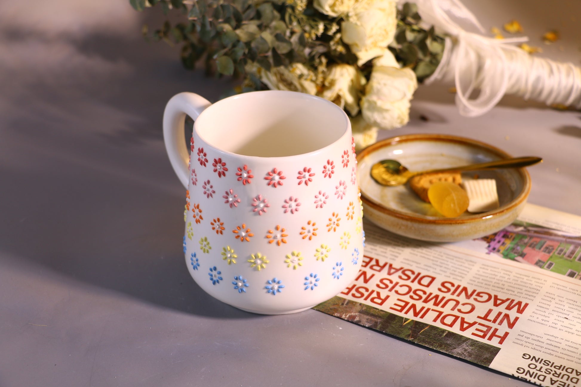 Handmade Colorful Flower Ceramic Mug – Cute Pottery Cup for Coffee and Tea Lovers