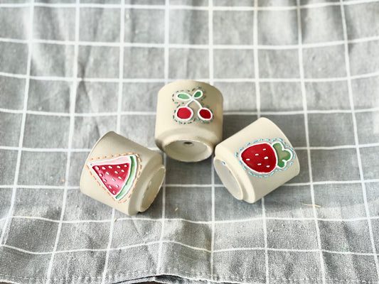Hand-Painted Fruit Ceramic Succulent Pot – Set Of 3 Cute Mini Planter for Cactus & Succulents