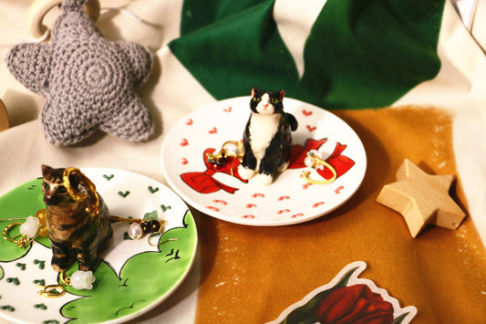 Jiji Handmade Ceramic Cat Ring Dish – Cute Anime-Inspired Jewelry Tray & Personalized Wedding Gift