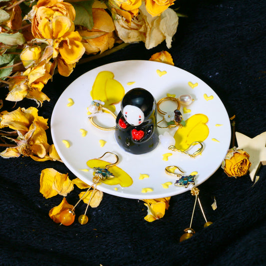 No-Face Man Ceramic Ring Dish – Handmade Anime Jewelry Tray & Personalized Gift Option