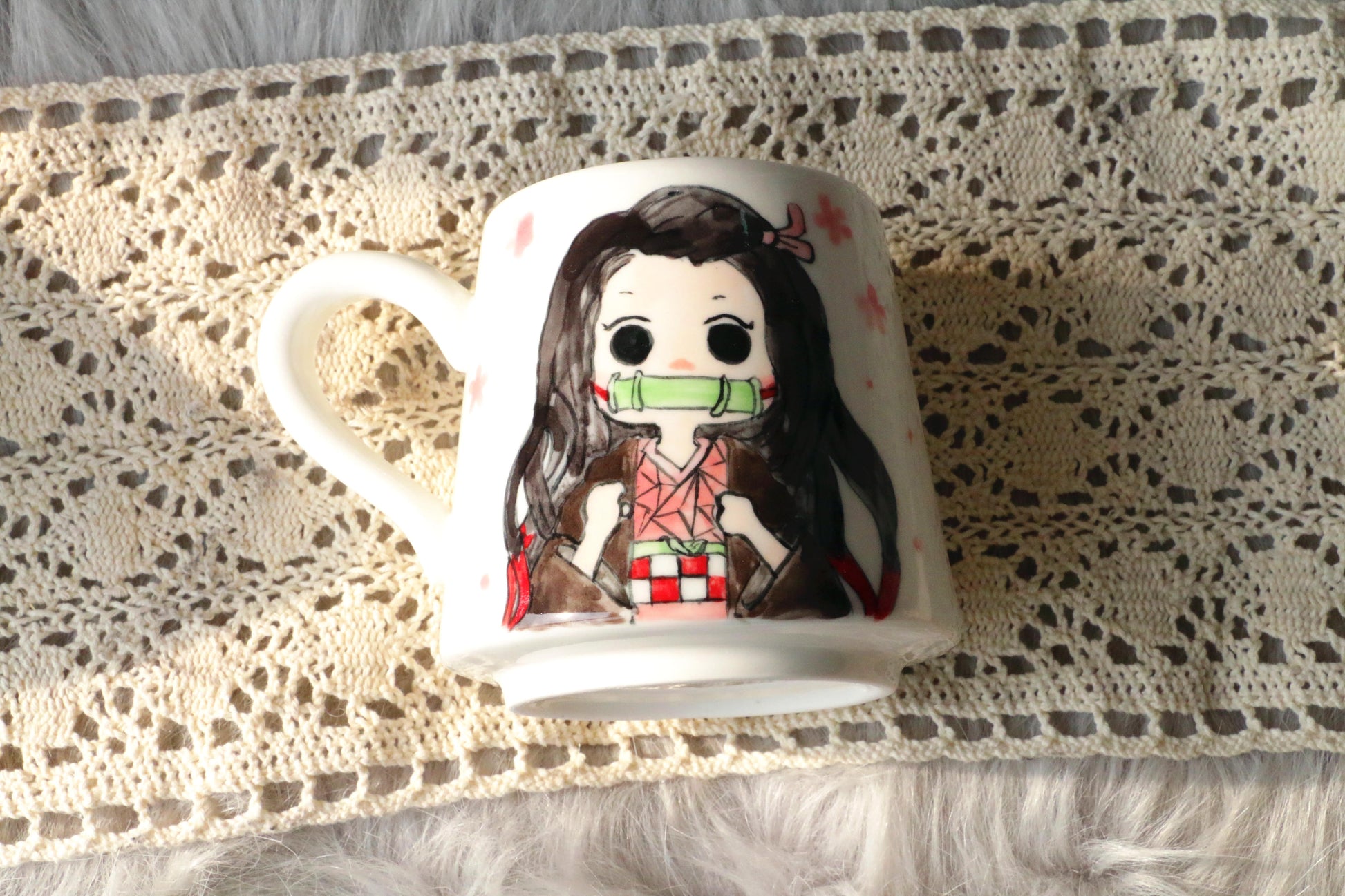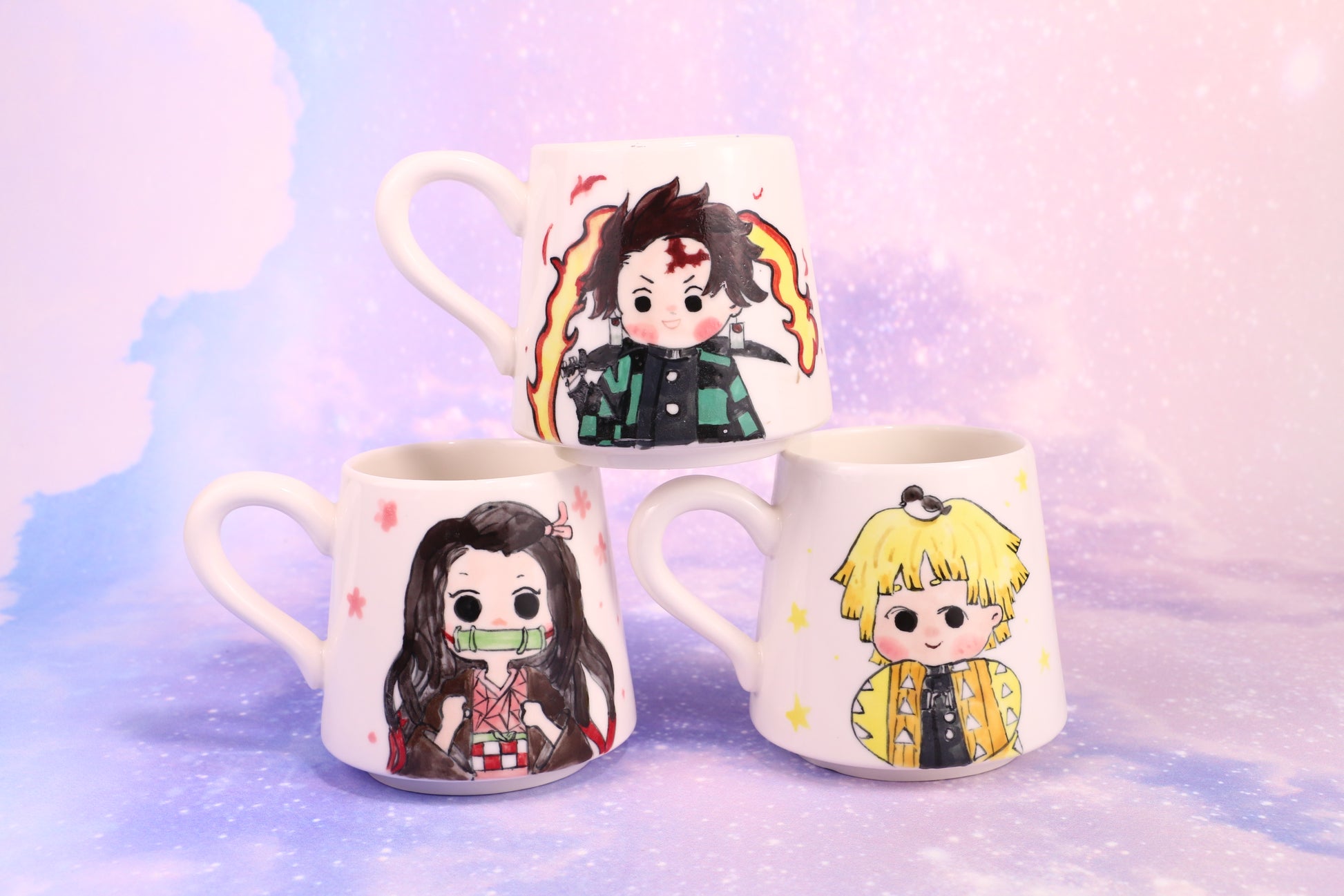 Demon-Slayer Ceramic Mugs Handpainted, Personalized Ceramic Cup for Anime Lovers