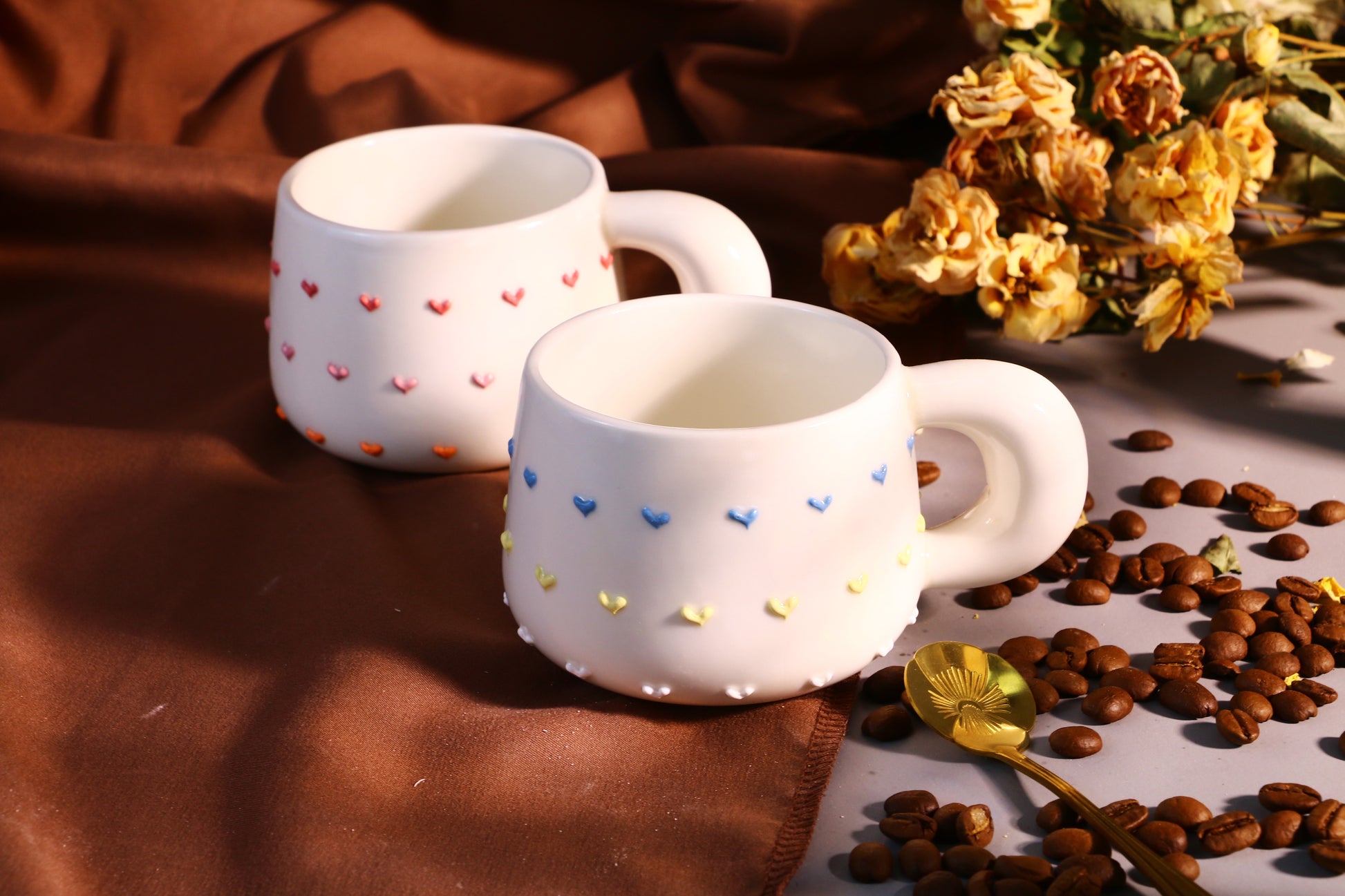 Handmade 3D Heart Mug โ Cute Ceramic Coffee Cup with Raised Heart Details