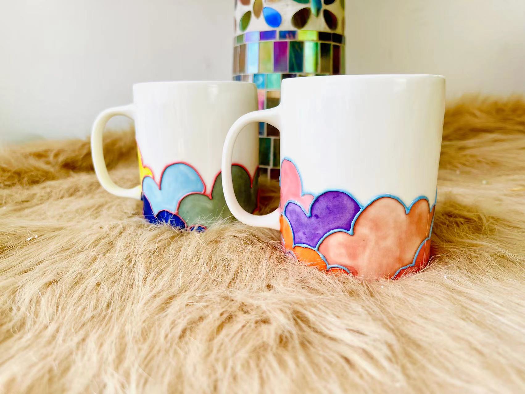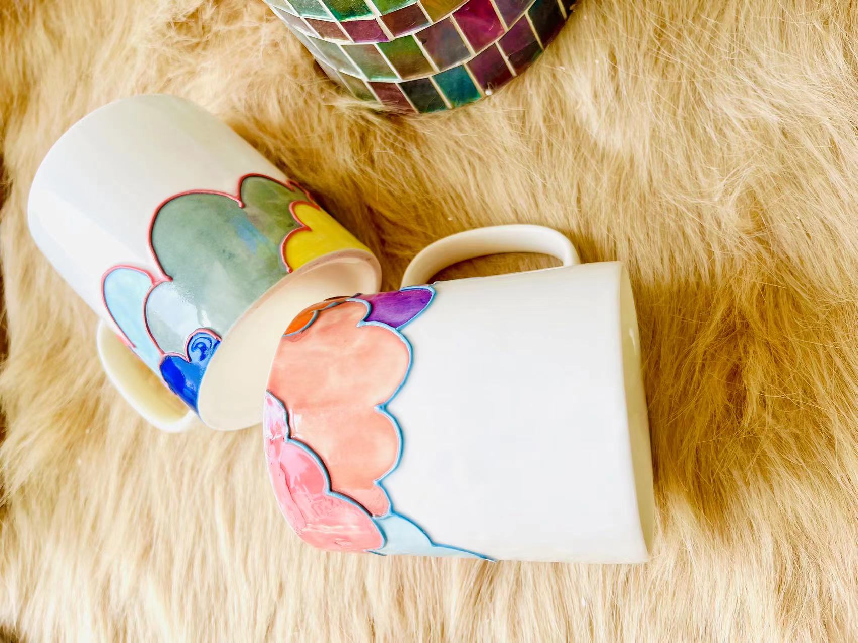 Colorful Cloud Ceramic Coffee Mug, Personalized Handmade Pottery Mug for Gifts
