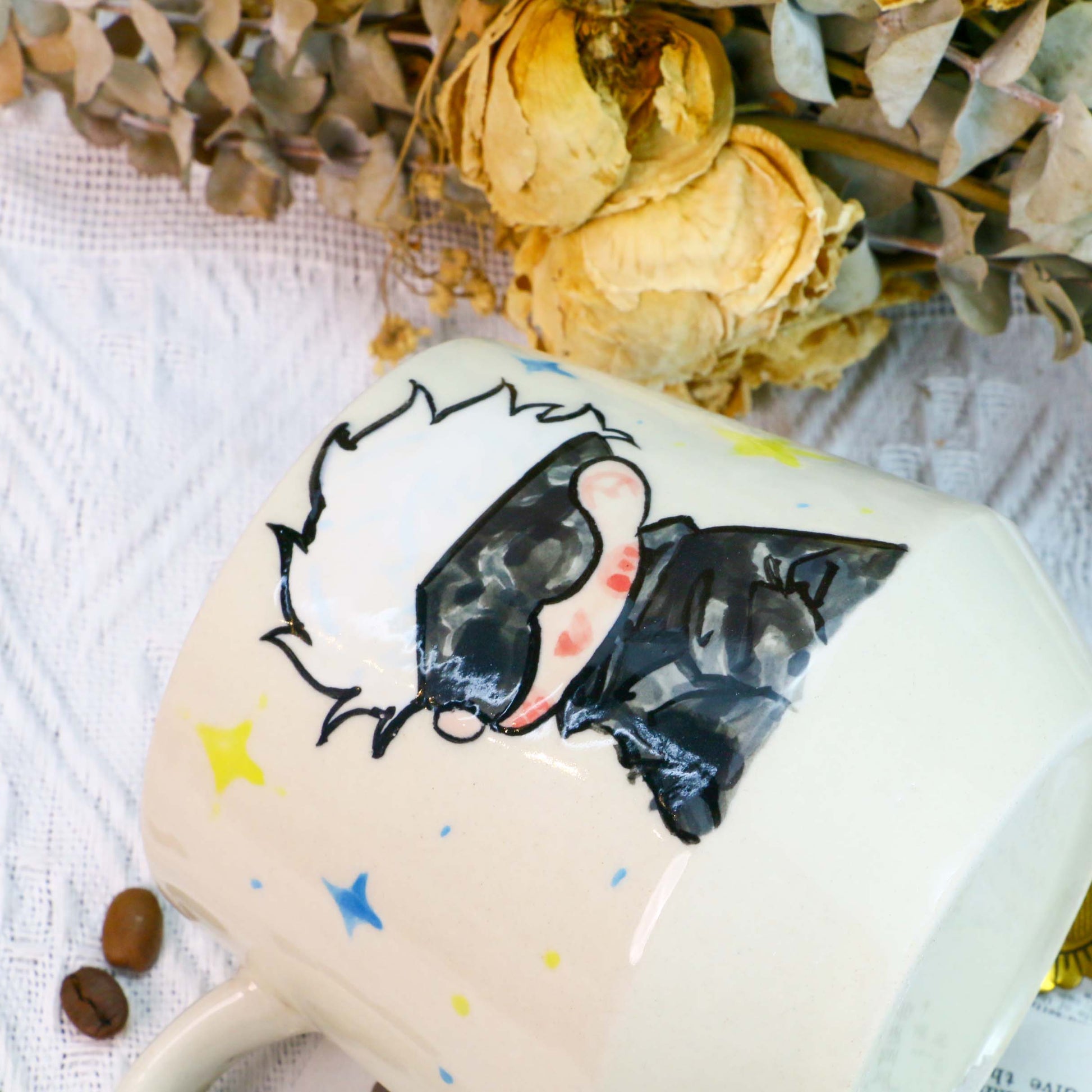 ๐ Sip your favorite drinks in this handmade ceramic mug, featuring a charming hand-painted anime-inspired design. The artistic details and expressive character illustration add a unique and playful aesthetic, making it a perfect addition to your daily coffee or tea routine.