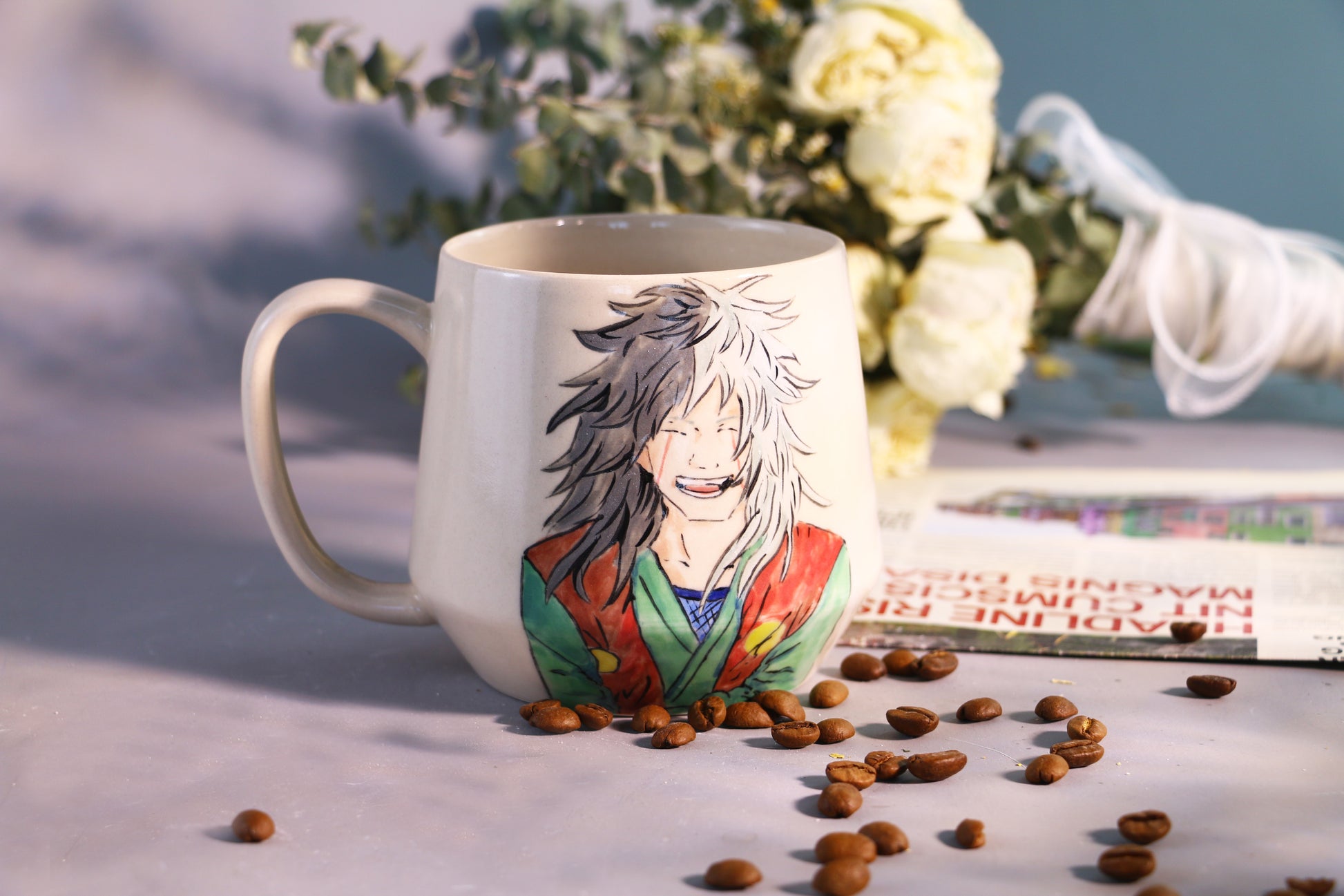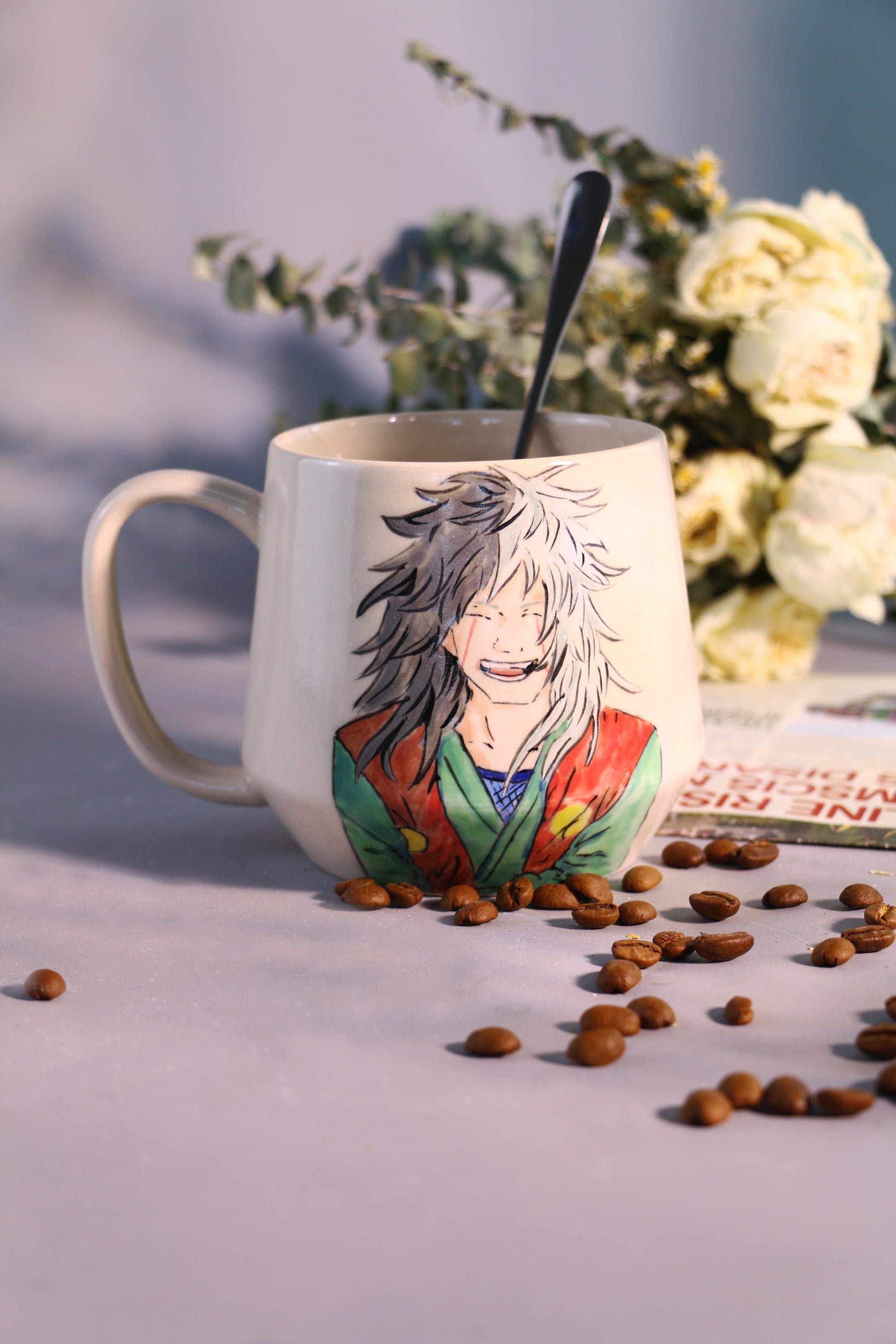 Hand painted Jiraiya Coffee Mug, Personalized Pottery Cup for Anime Lovers