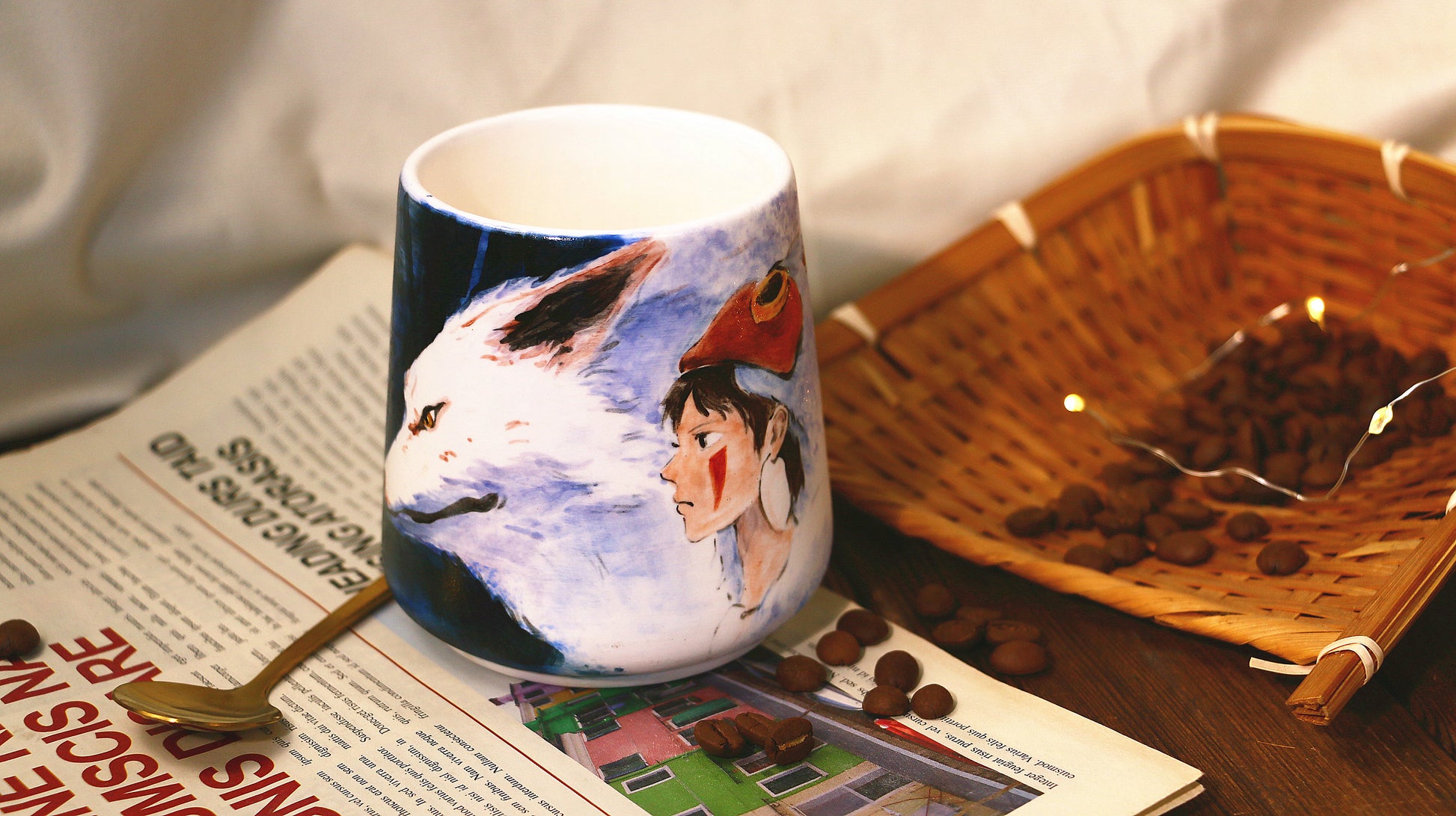 Princess Mononoke Ceramic Coffee Mug, Handmade Pottery Cup for Anime Lovers