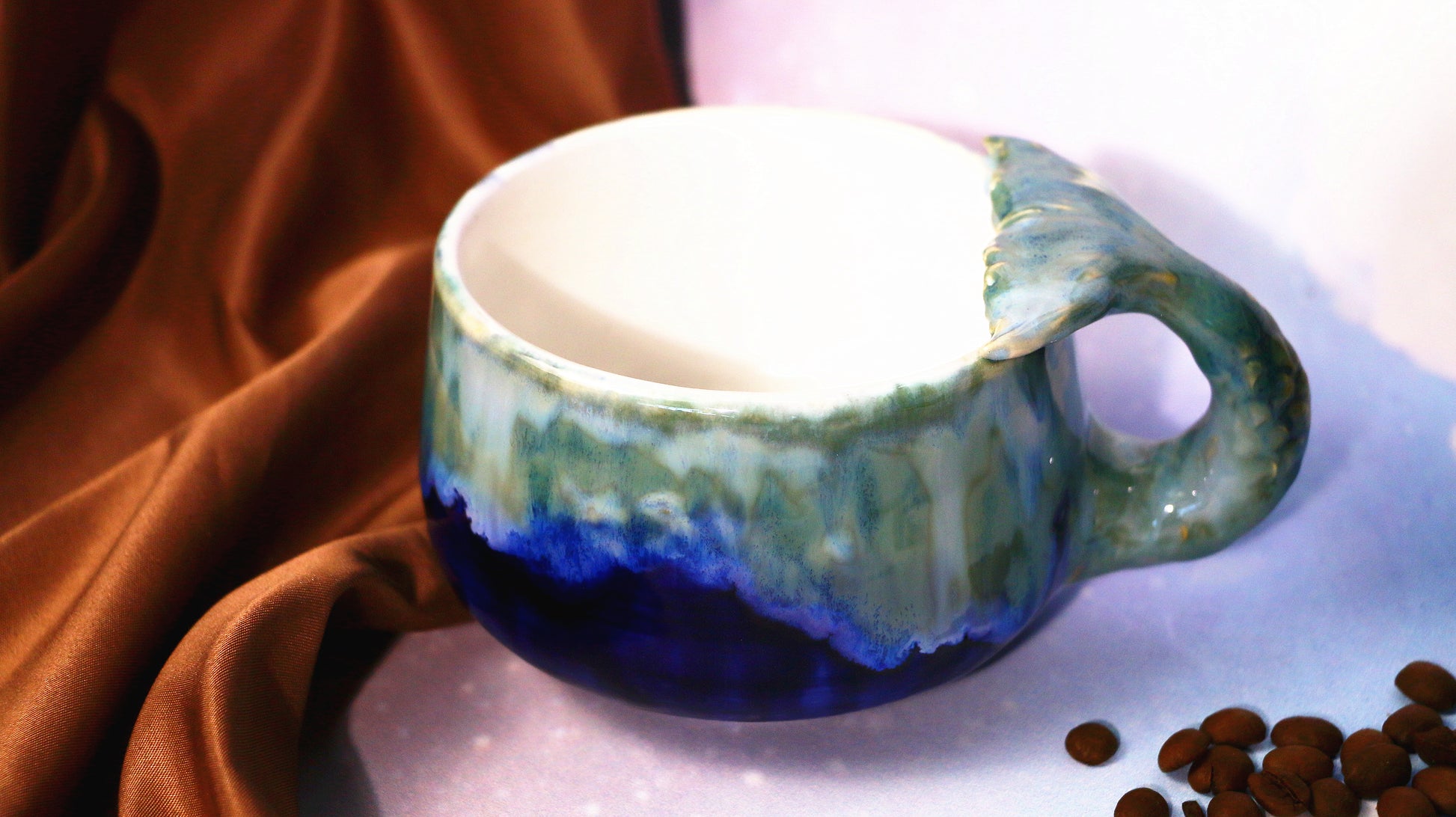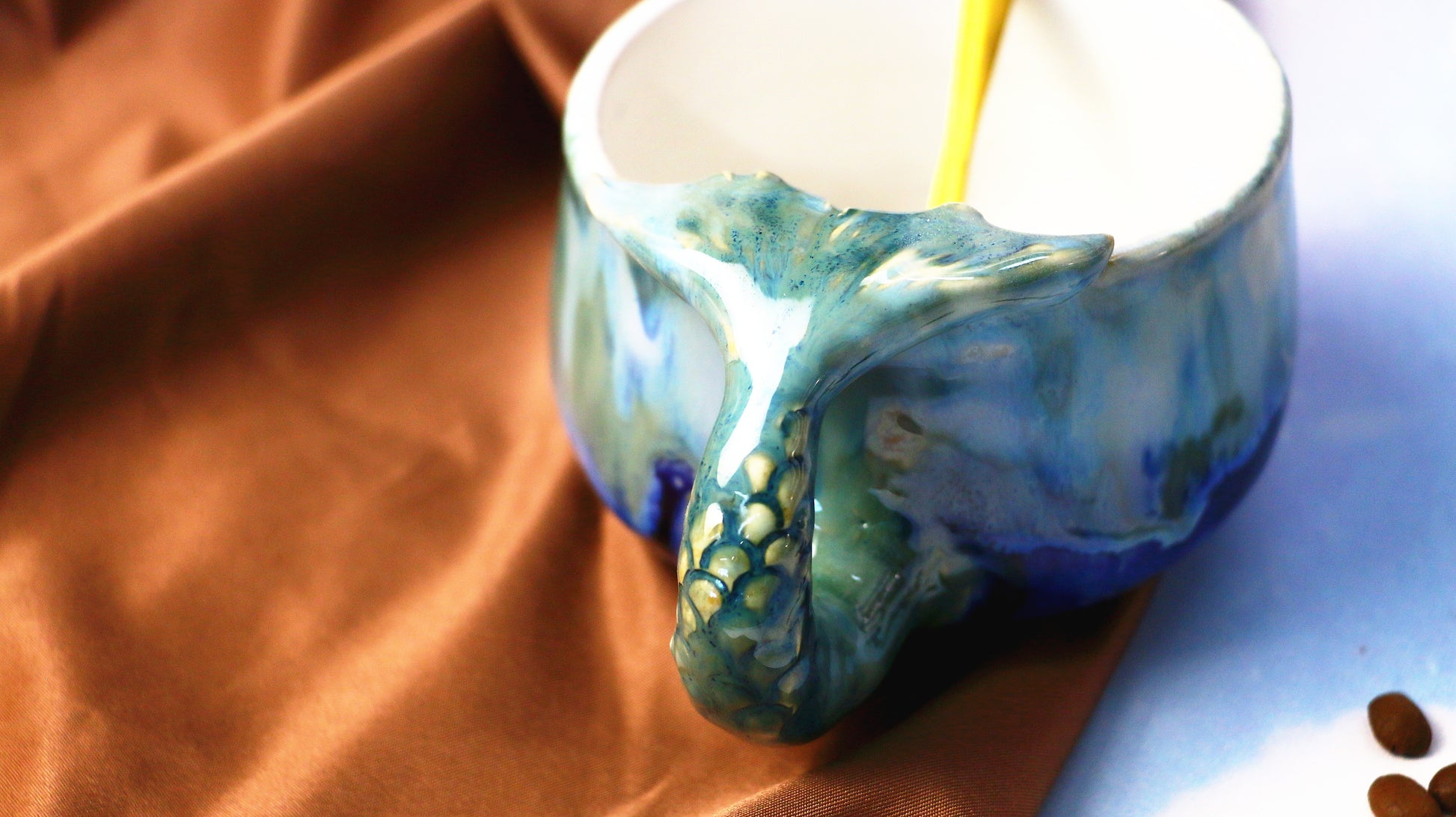 Mystic Mermaid Ceramic Mug with Handmade 3D Mermaid Tail Handle