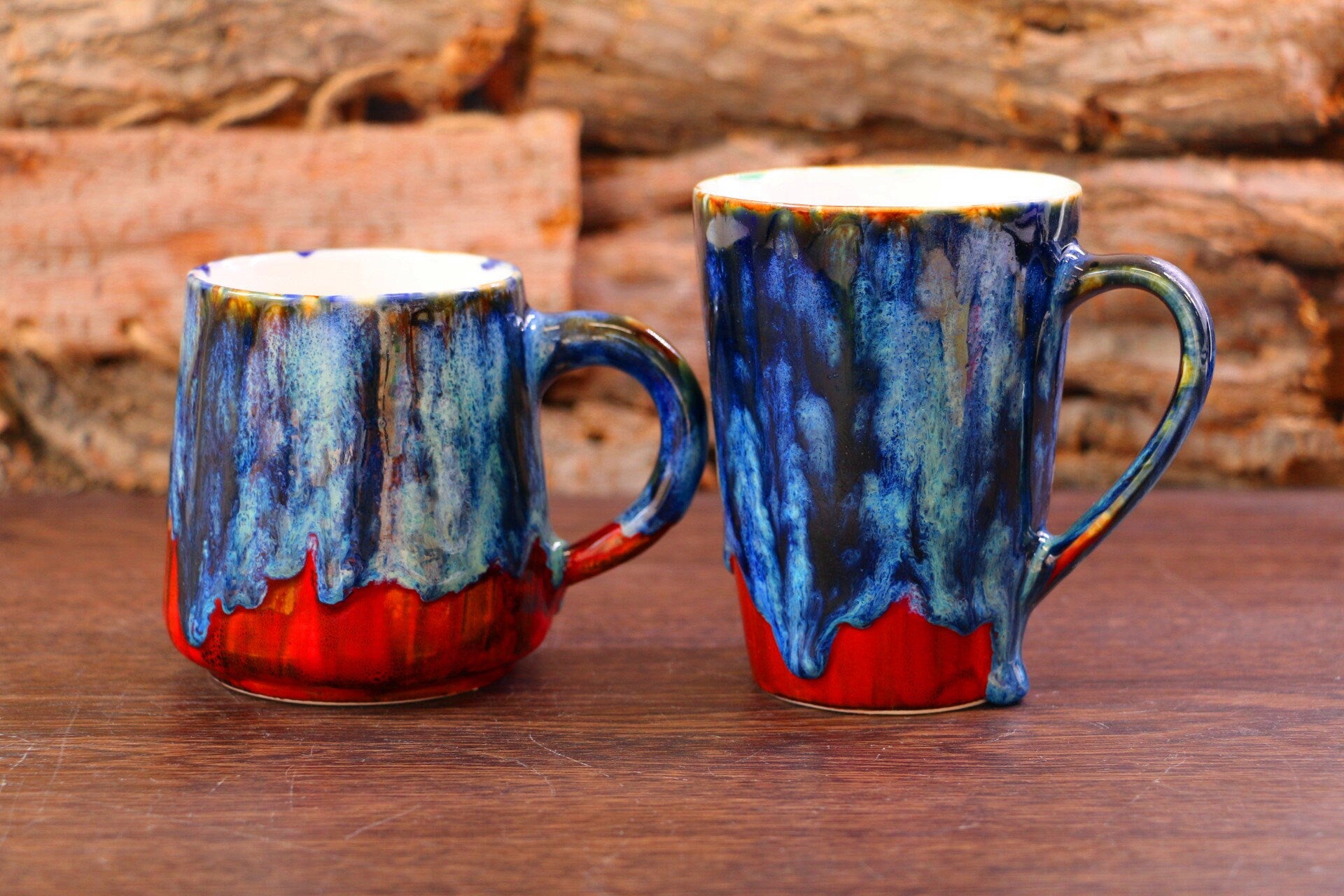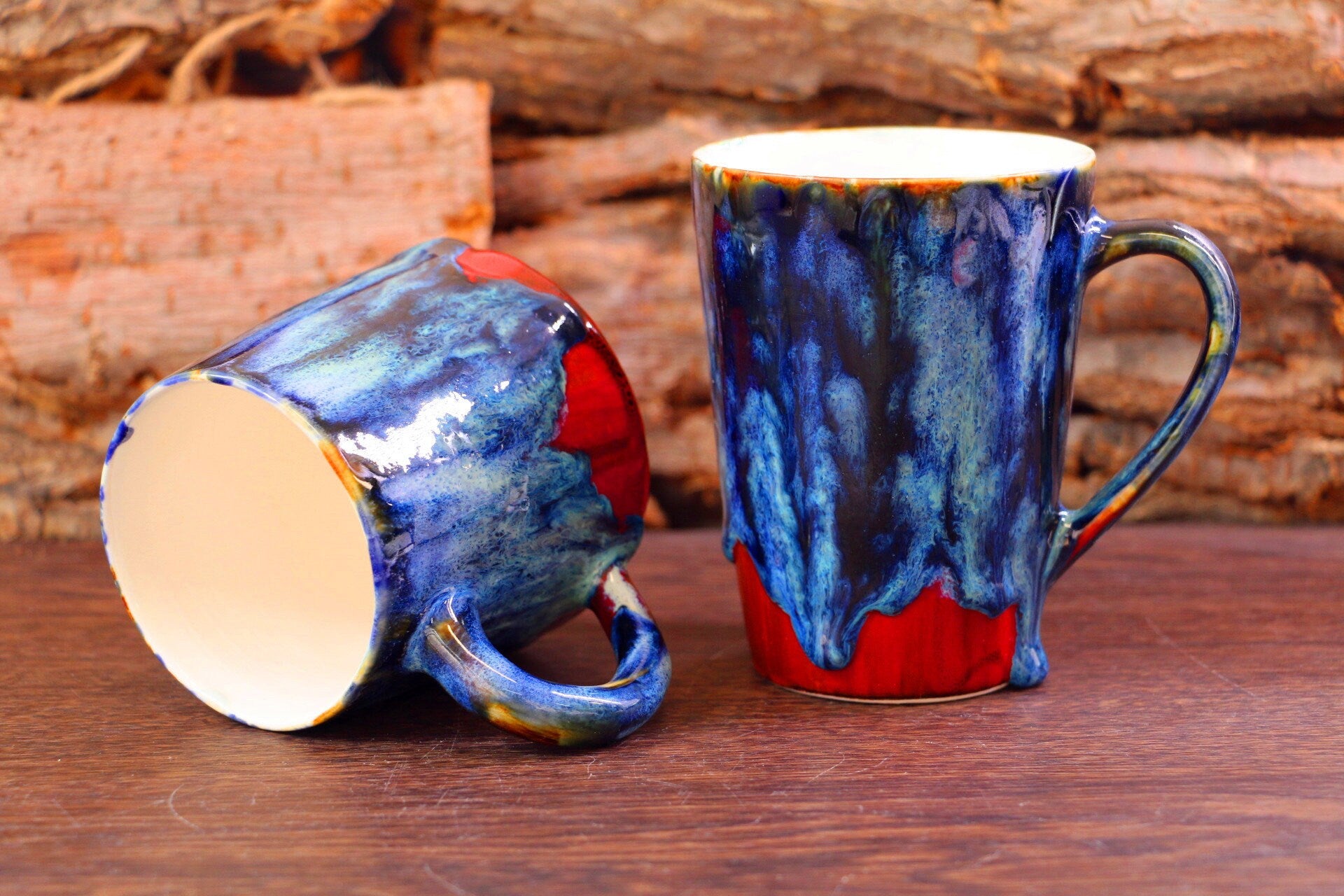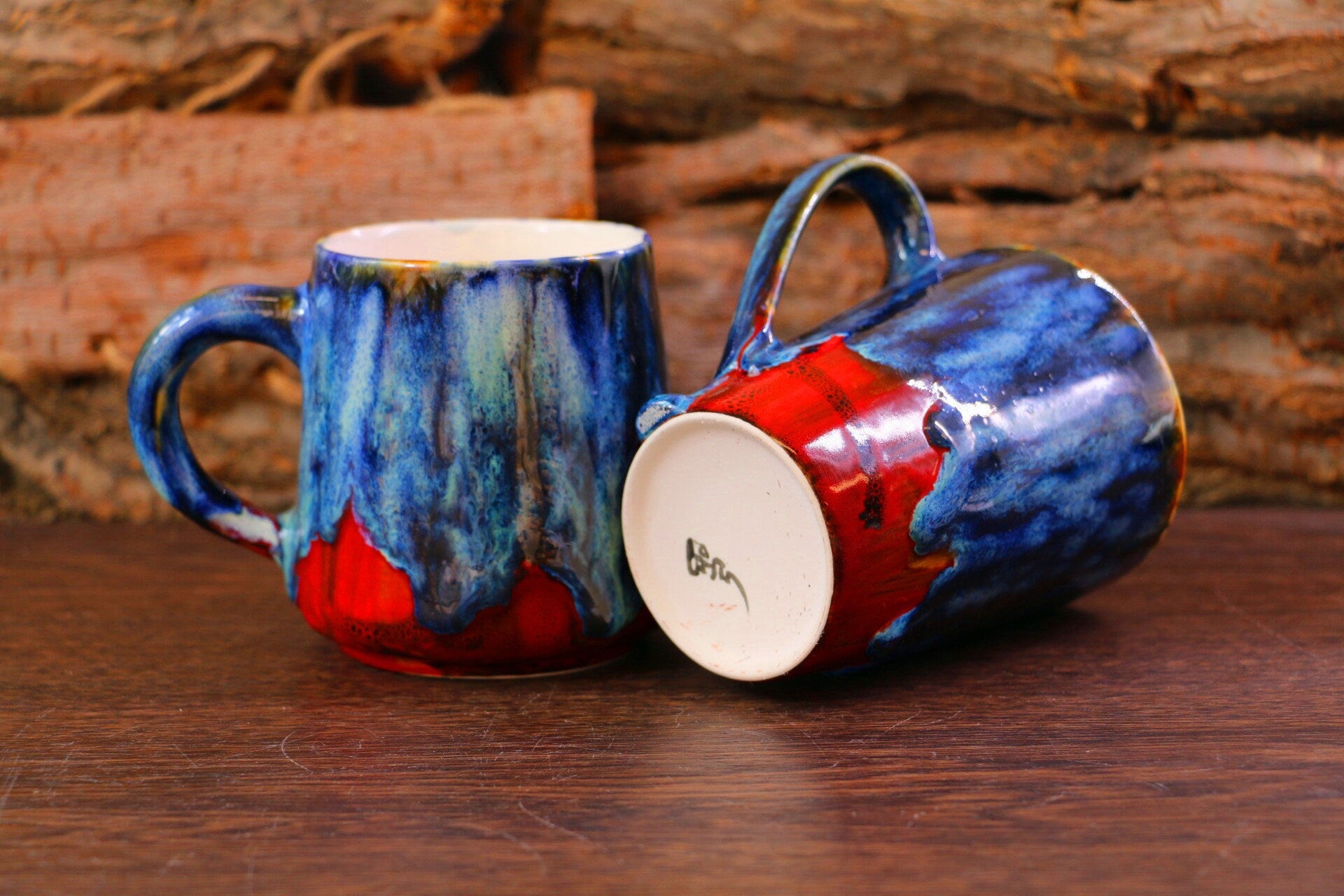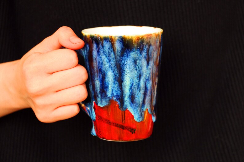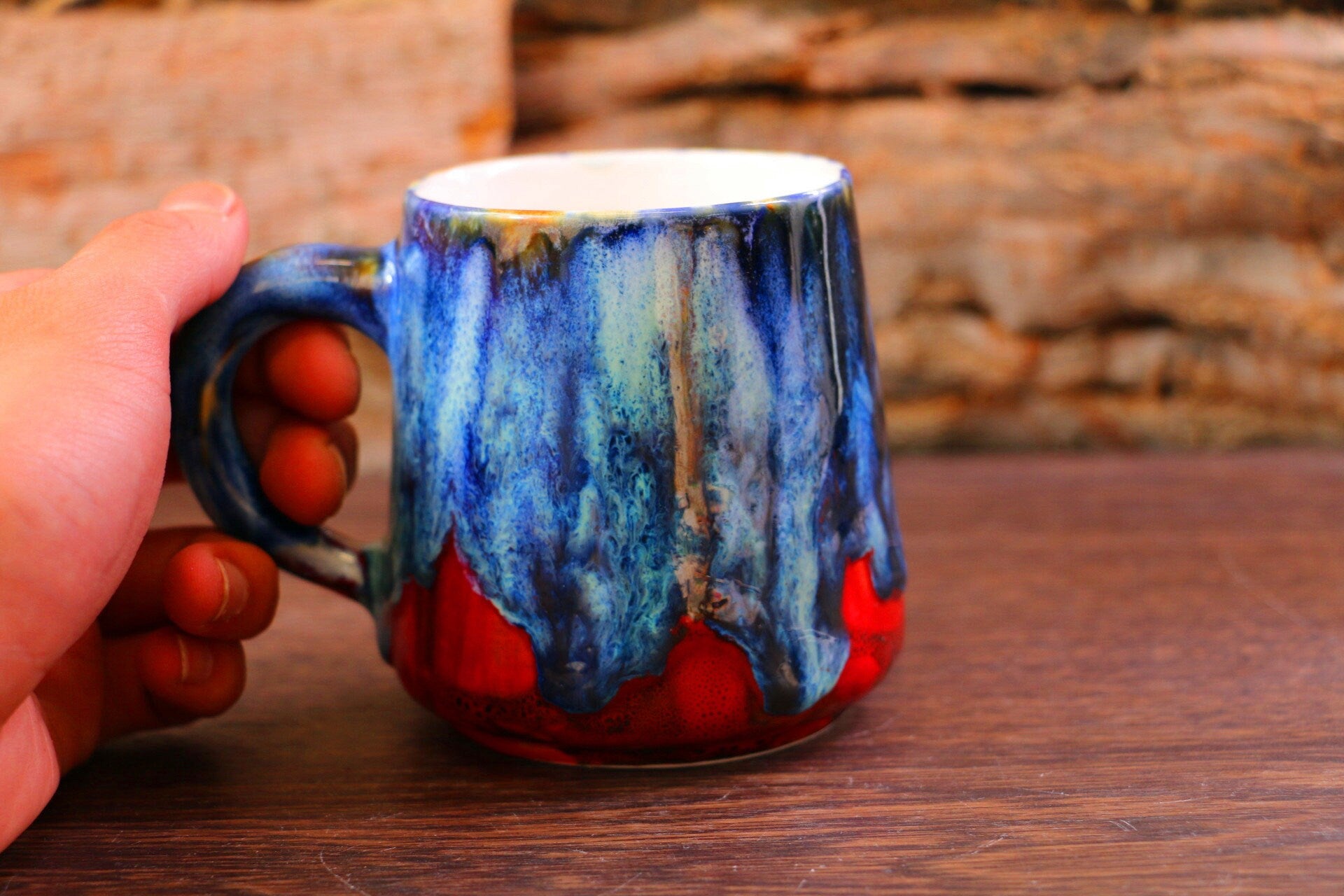 ☕ Add a touch of modern art to your coffee routine with this handcrafted ceramic mug featuring an abstract drip glaze design. The combination of bold blue, red, and earthy tones creates a stunning, artistic piece that stands out in any kitchen. Ideal for coffee enthusiasts, this mug also makes a meaningful gift for those who appreciate handcrafted pottery and vibrant designs.