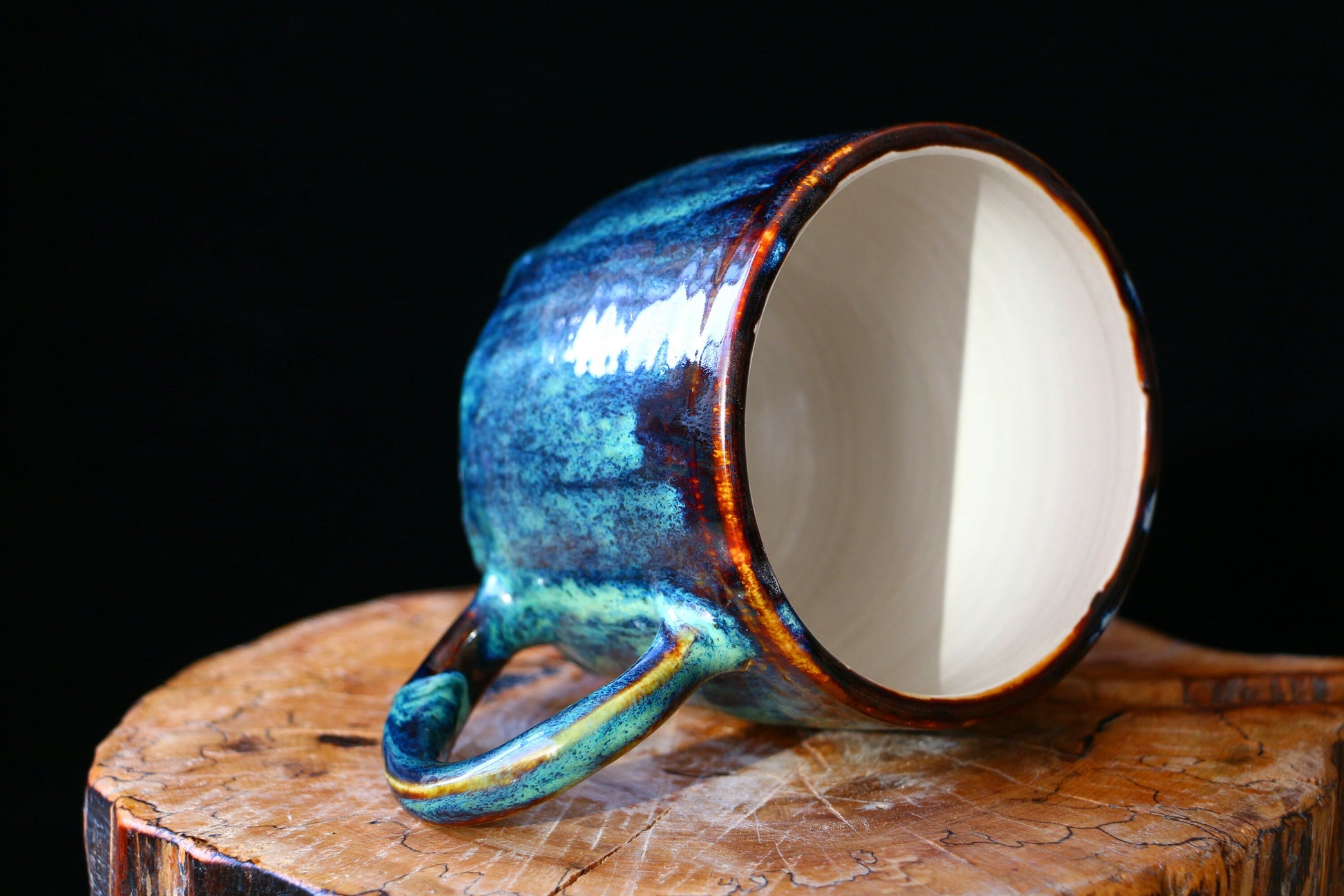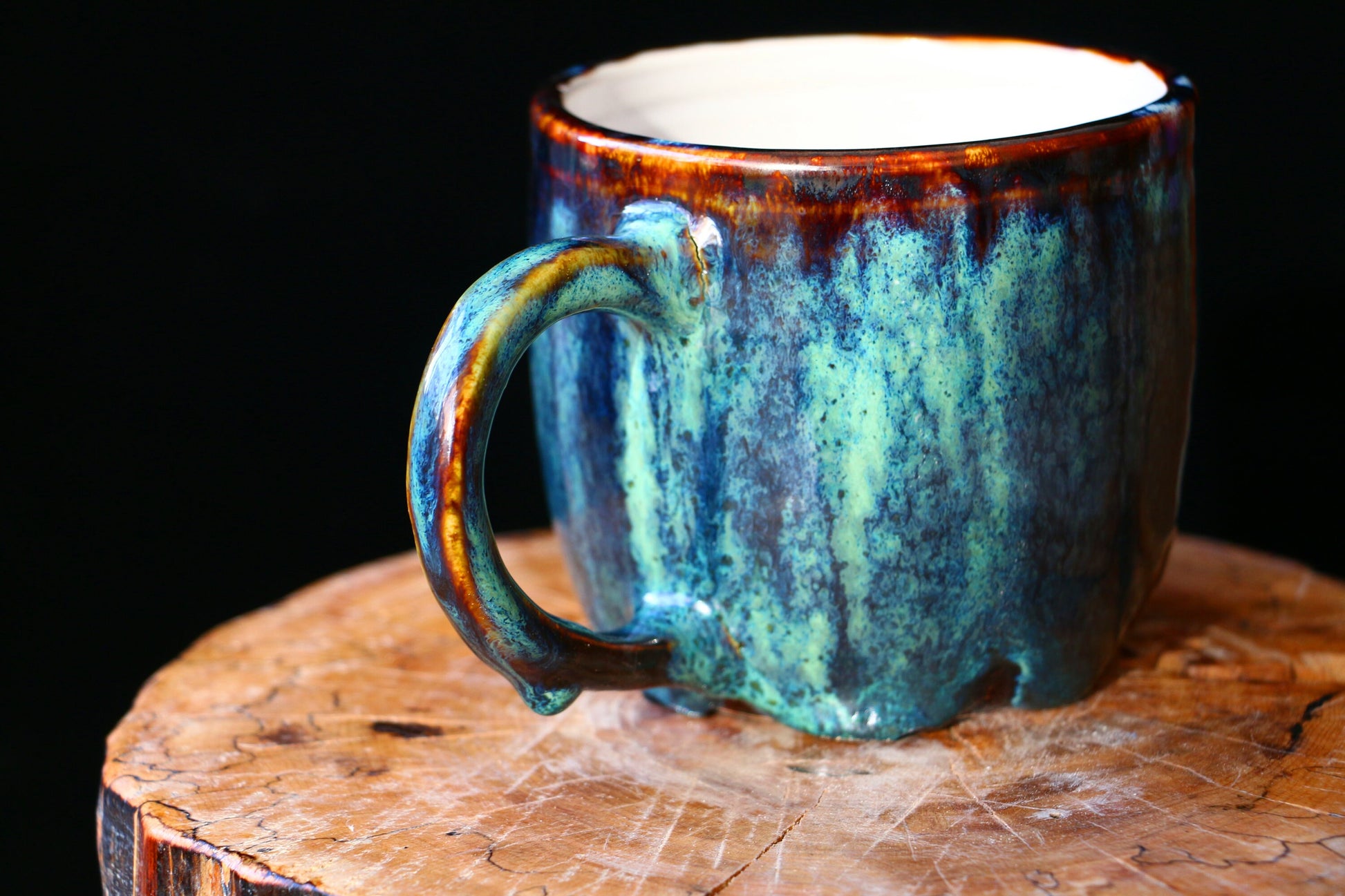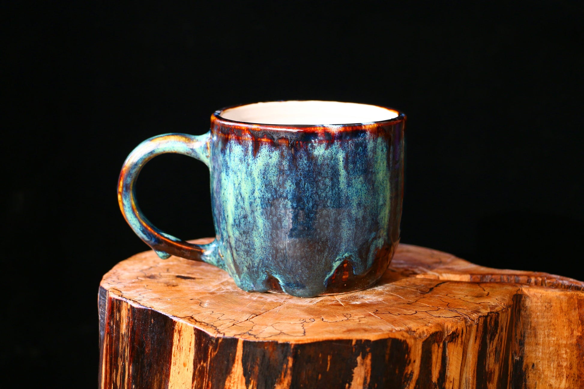 - The specially made glaze melts at high temperature, forming crystals and binding to the surface of the mug.