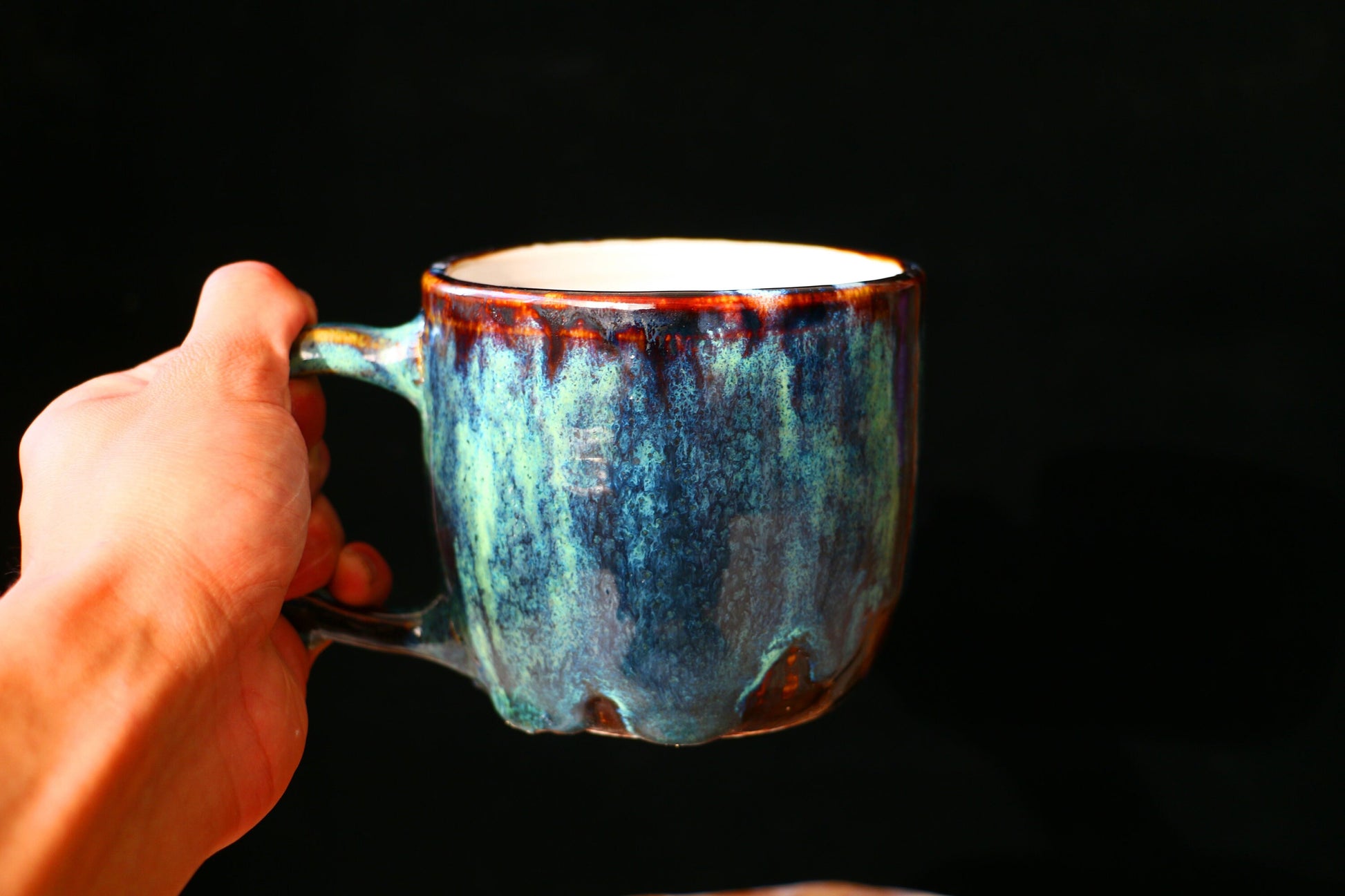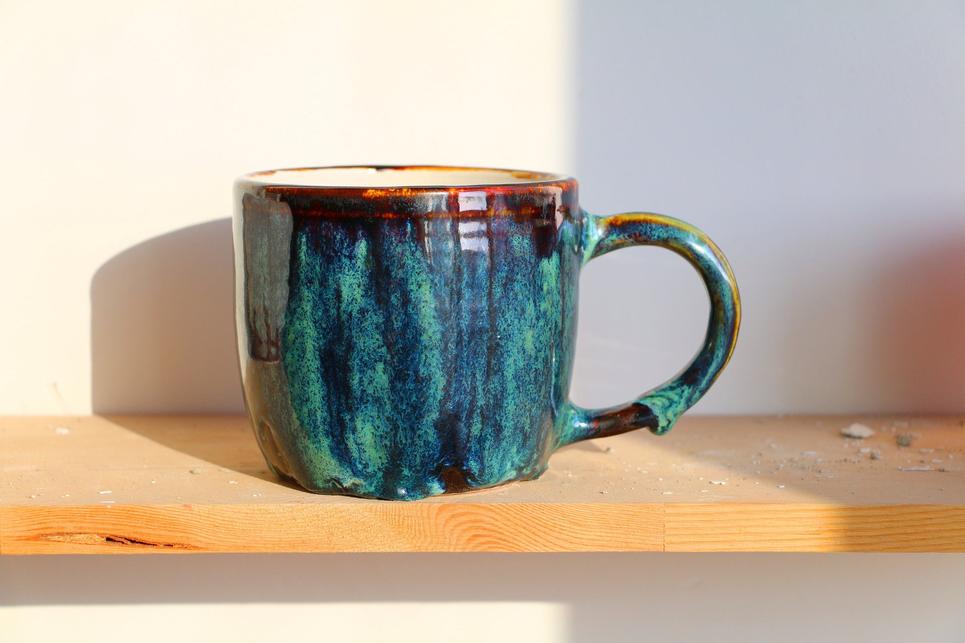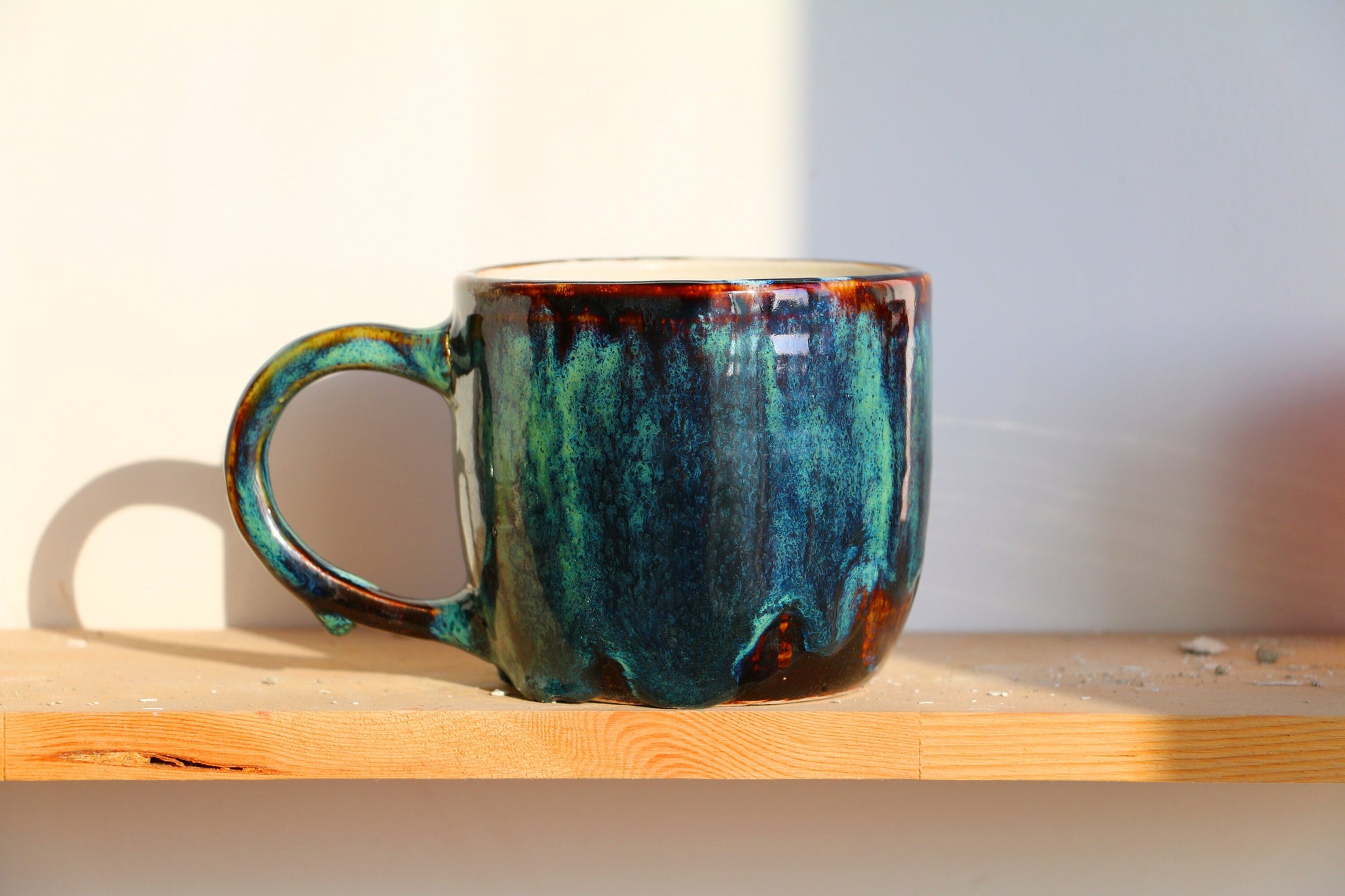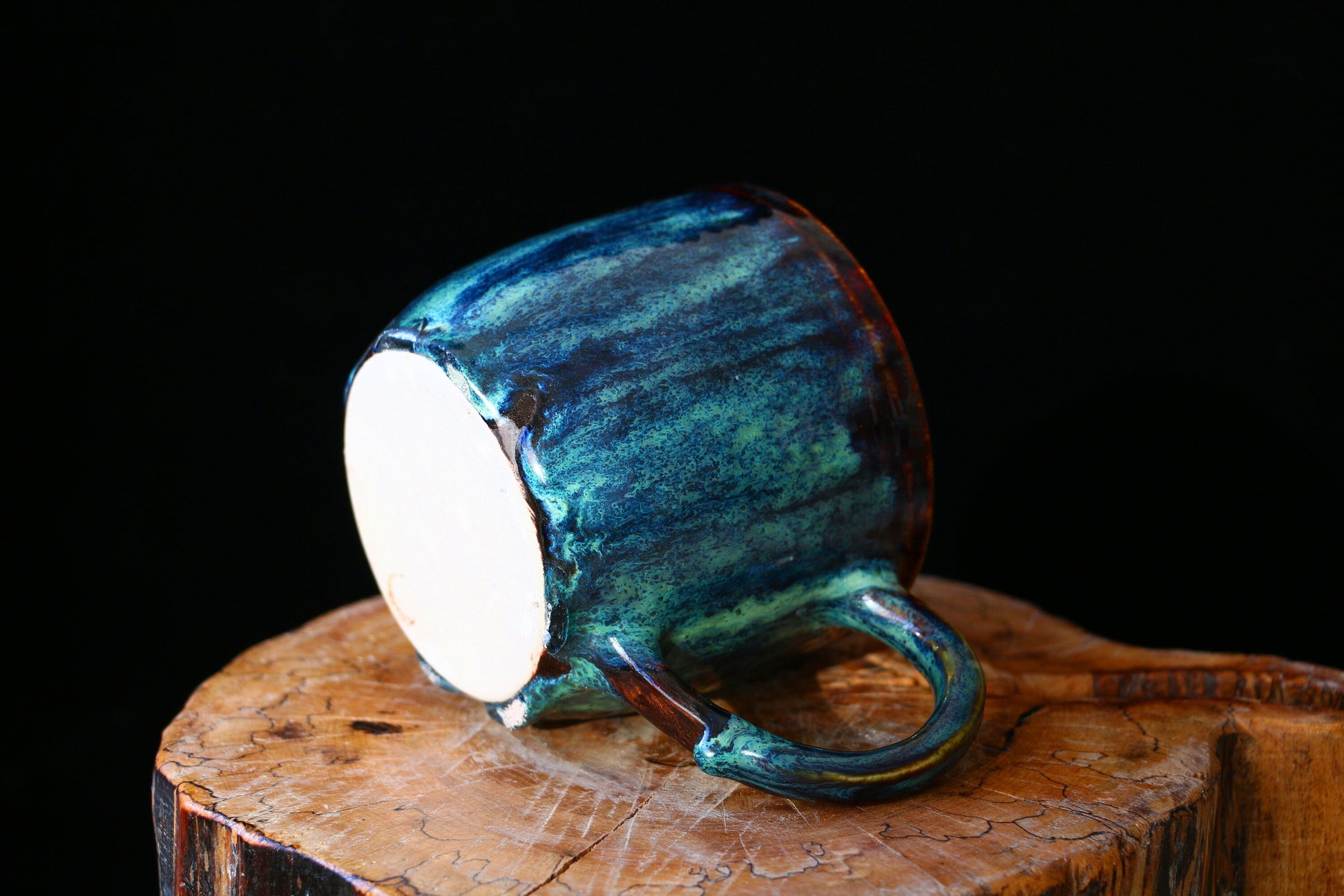 Handmade Psychedelic Green Ceramic Mugs For Coffee Lovers, Personalized Pottery Mug