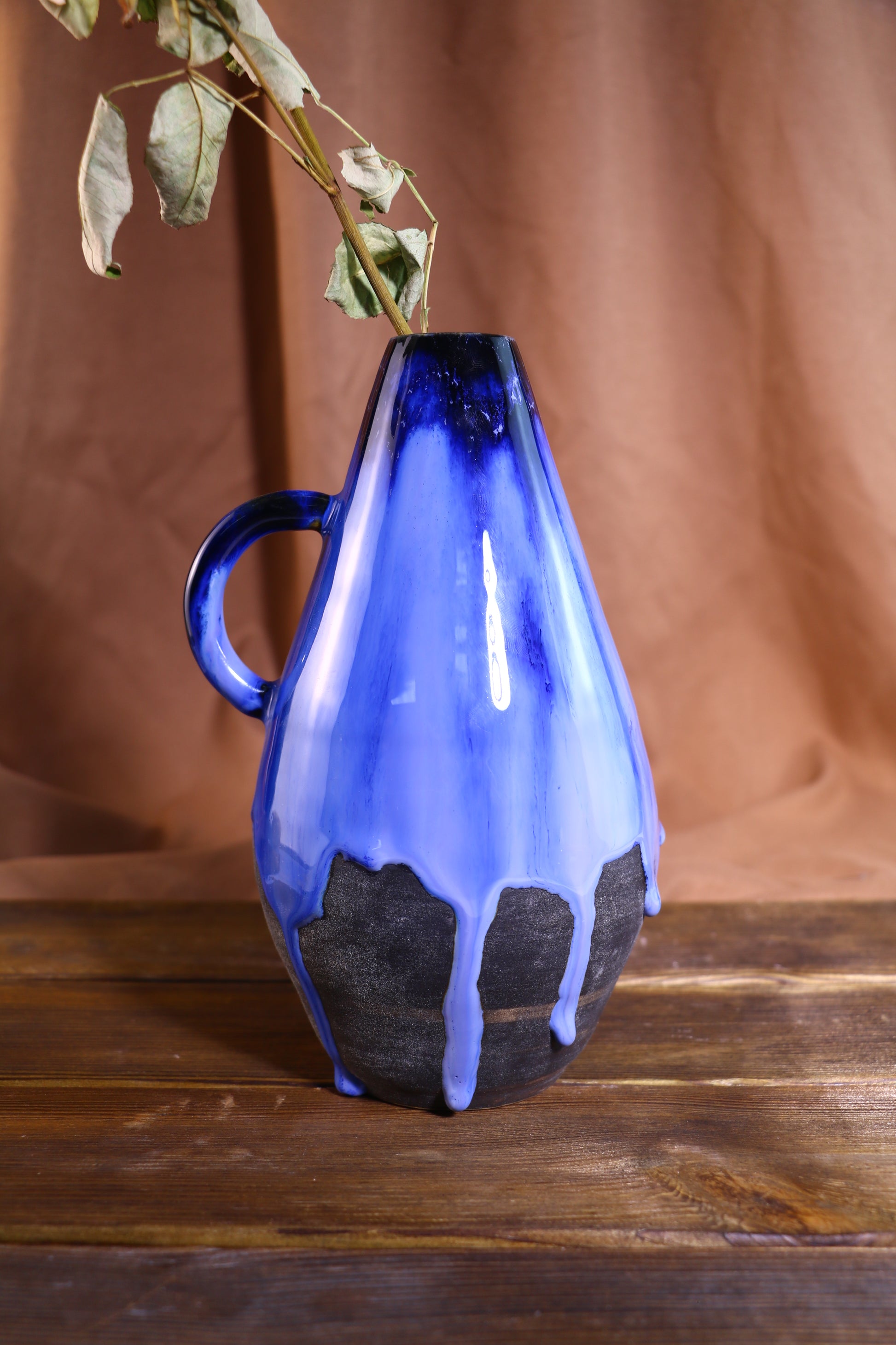 Handmade Blue Glaze Drip Ceramic Vase, Unique Artisan Pottery Home Decor