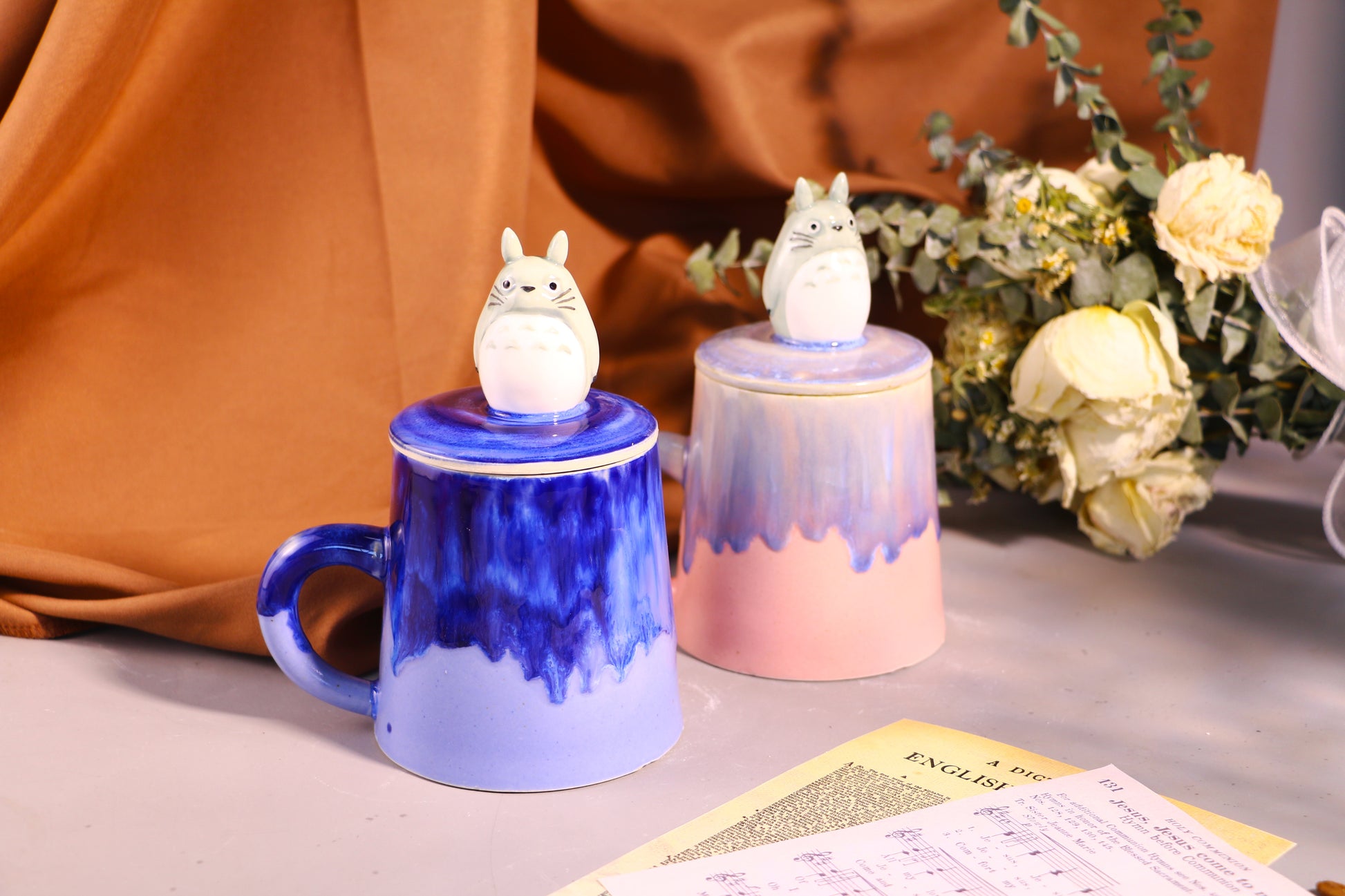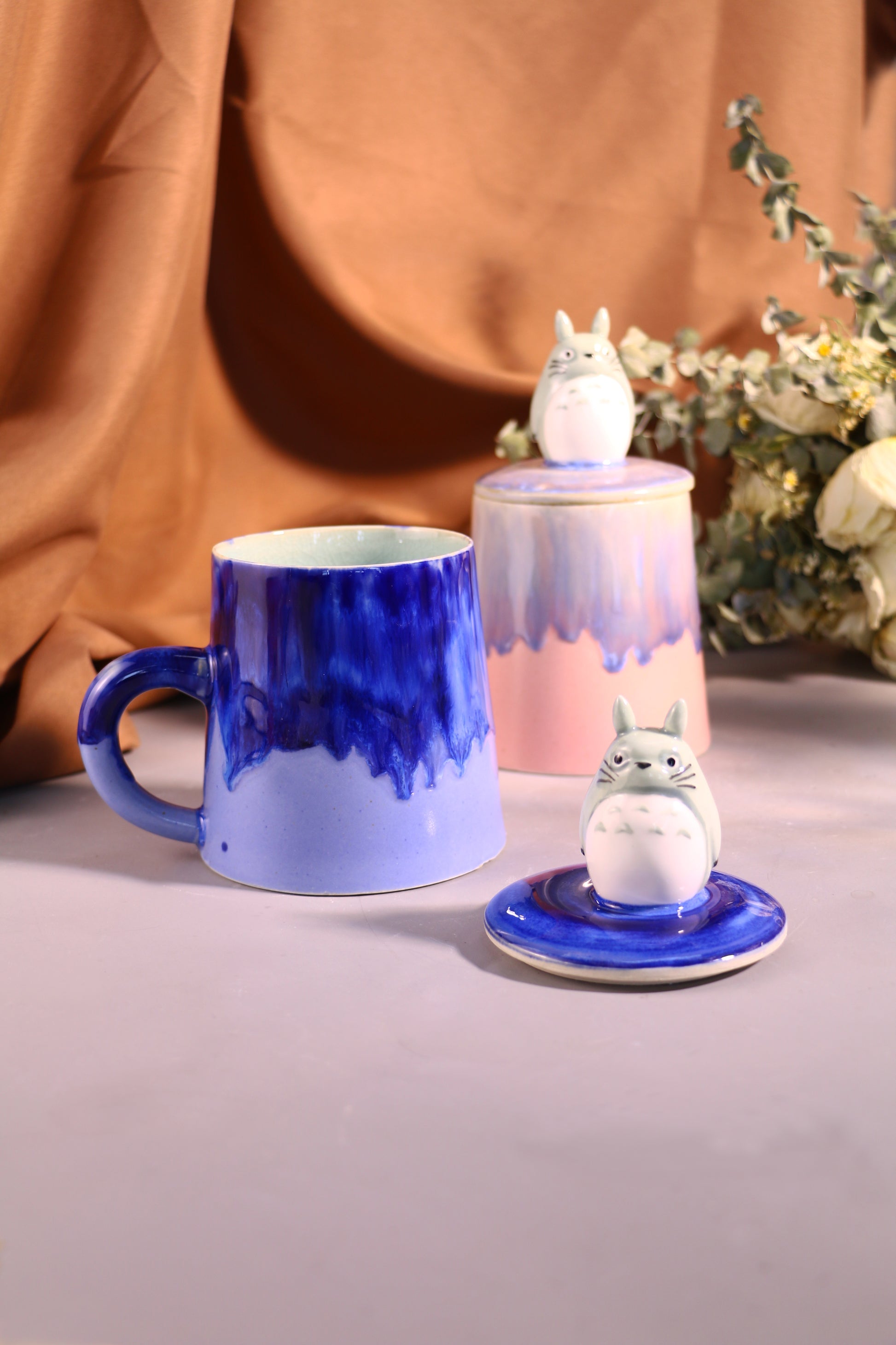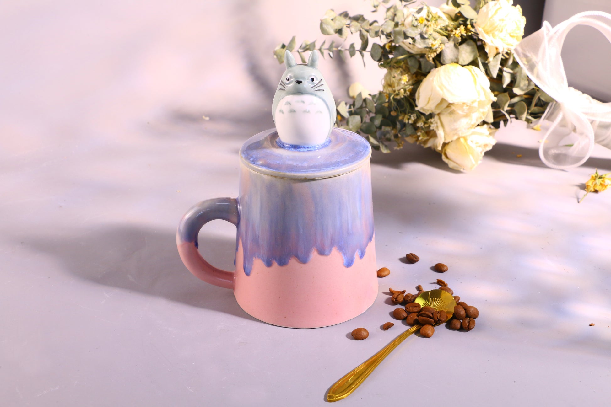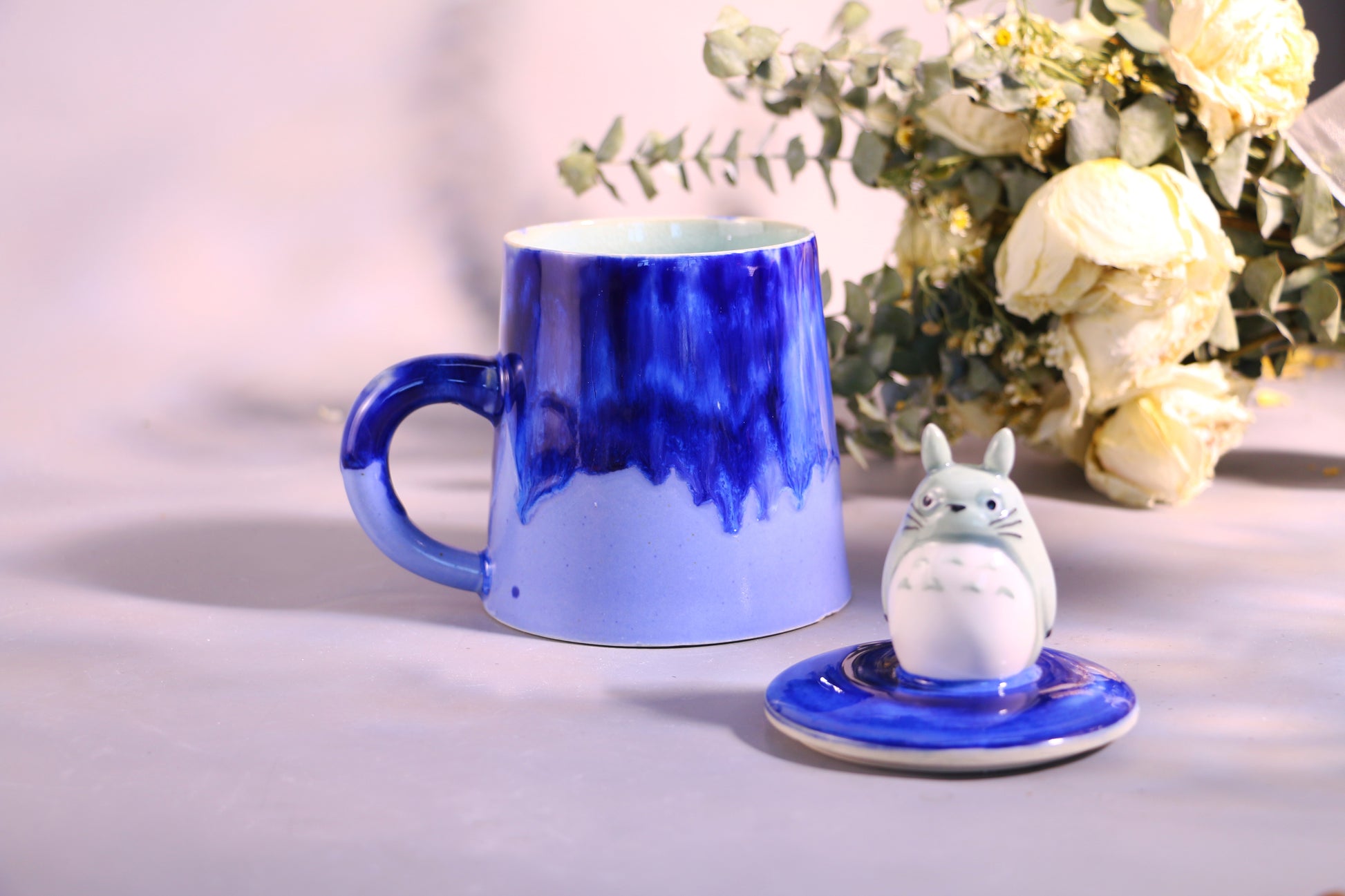 Totoro Ceramic Mug with Lid – Handmade Gift for Anime & Coffee Lovers
