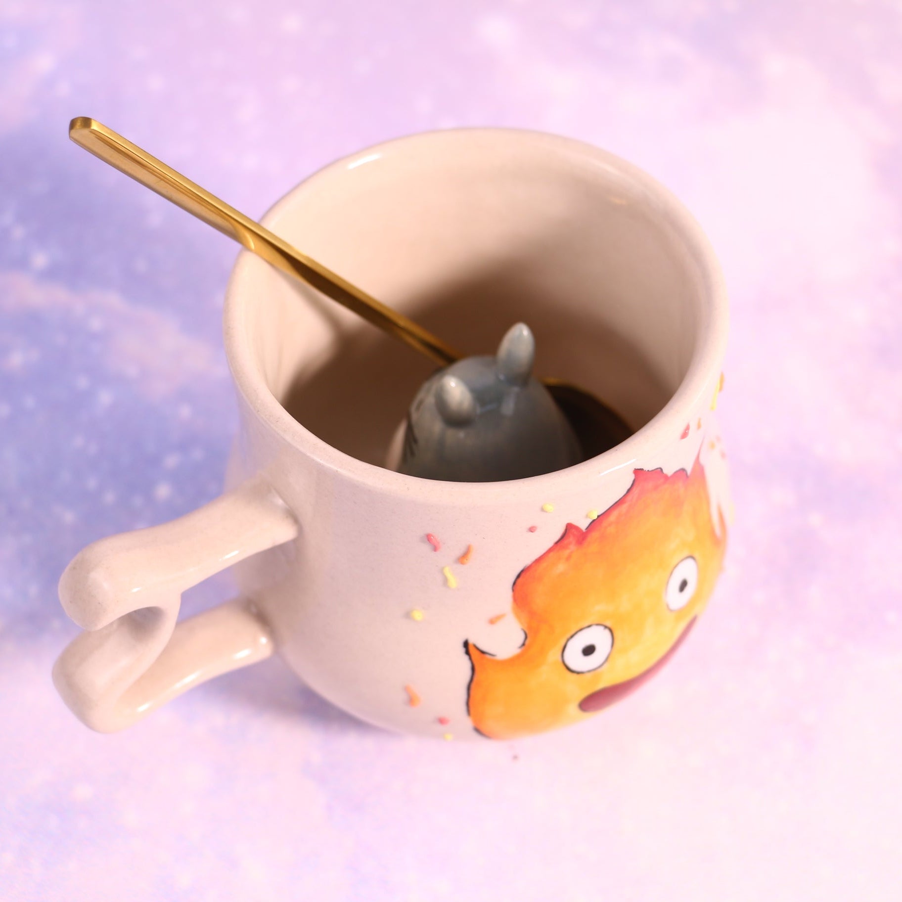 Handmade Calcifer Ceramic Mug – Personalized Pottery Gift for Studio Ghibli Fans
