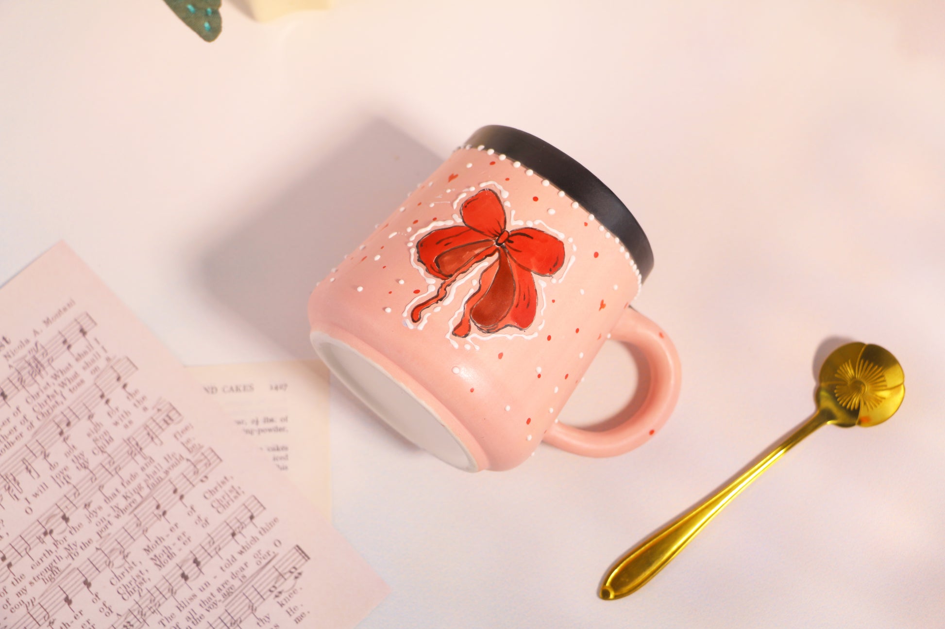 Kawaii 3D Bow Ceramic Coffee Mug with Hand-Painted 3D Ribbon Design